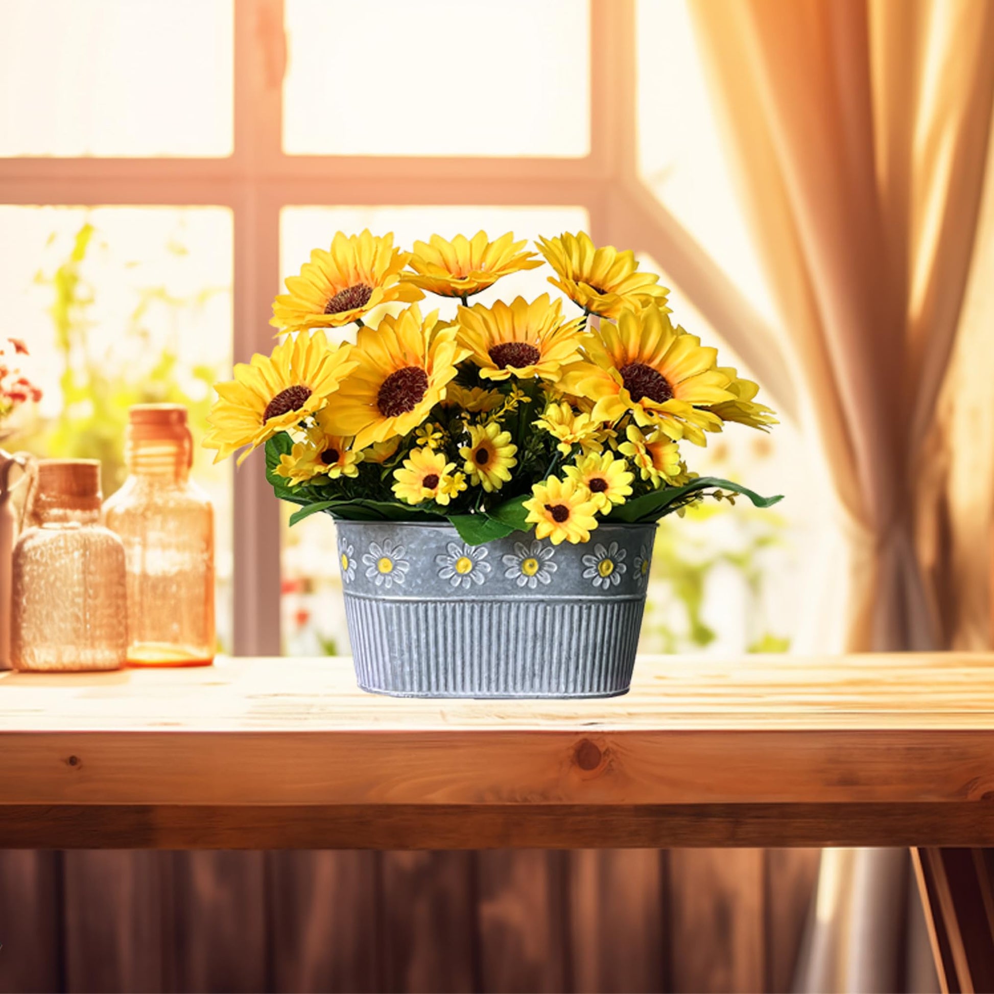 - Quality and Long-lasting Materials: Crafted from quality silk and plastic, the sunflower house plants are bright, vibrant, and full of vitality. The metal pots add durability, ensuring these faux plants can be safely used for interior decoration over several years.