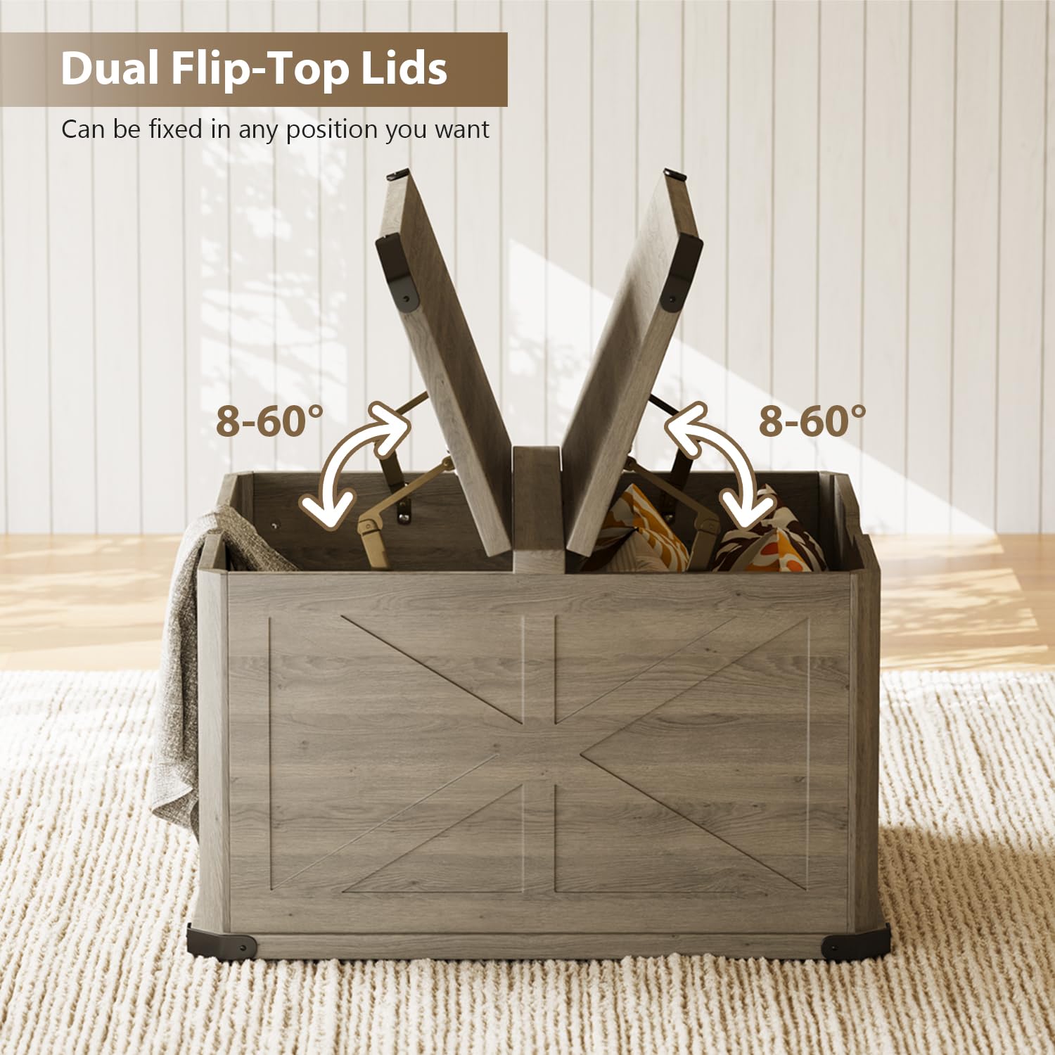 - 【Seamless Ultra-Smooth Surface Technology】 HOPUBUY Farmhouse Coffee Table crafted with 31.5' x 31.5' seamless tabletop featuring anti-scratch laminate finish, Flip-Top coffee table eliminates gaps and hardware protrusions for frictionless object placement. Micro-beveled edges prevent cup ring marks while 360° edge protection guards against daily impacts.