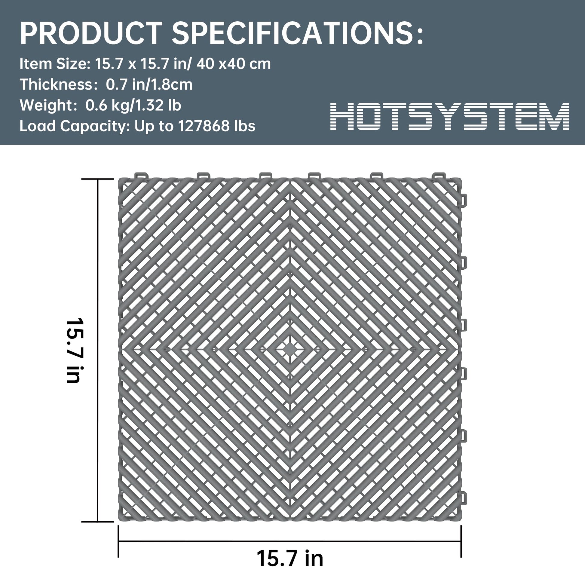 - 【Multi Purpose】HOTSYSTEM provides high-quality interlocking floor tiles for garages, basements, and workshops. We believe that a stronger, safer, and smarter home starts from the ground up.
