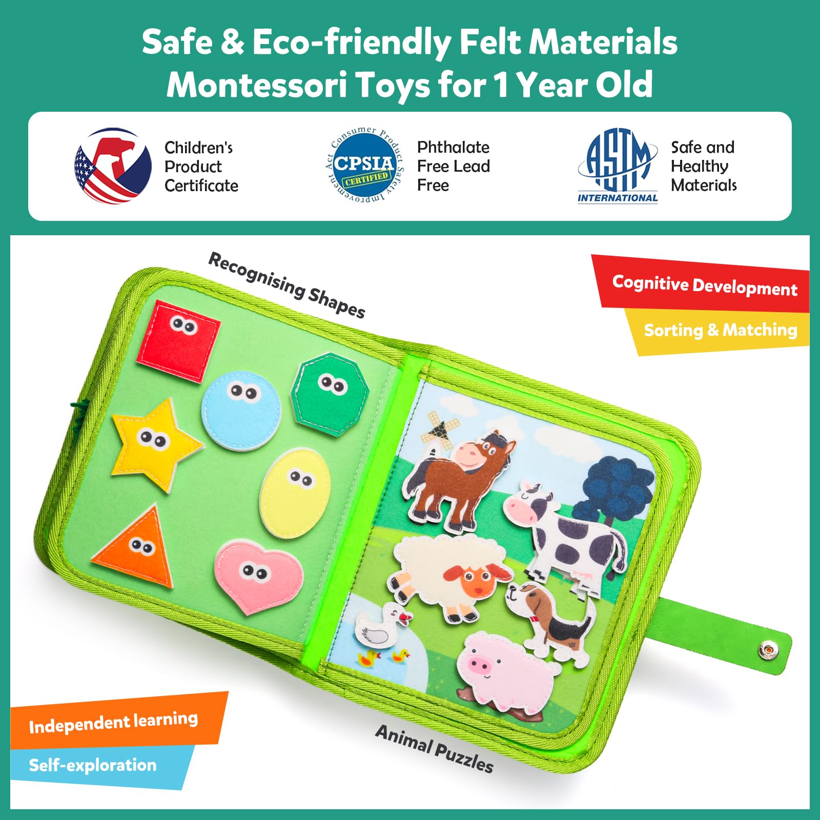 - Safe & Durable Busy Book: HOVIKOKI educational toys is armed with CPC, ASTM, and CPSIA Certified. All toddler toys undergo high standard of production process and strict quality inspection. Montessori toys for 1 year old is made of safe and soft-touch felt material, friendly for toddler’s soft little hands. Sturdy stitching, not easy to fall off, keeping your kids busy and safe.