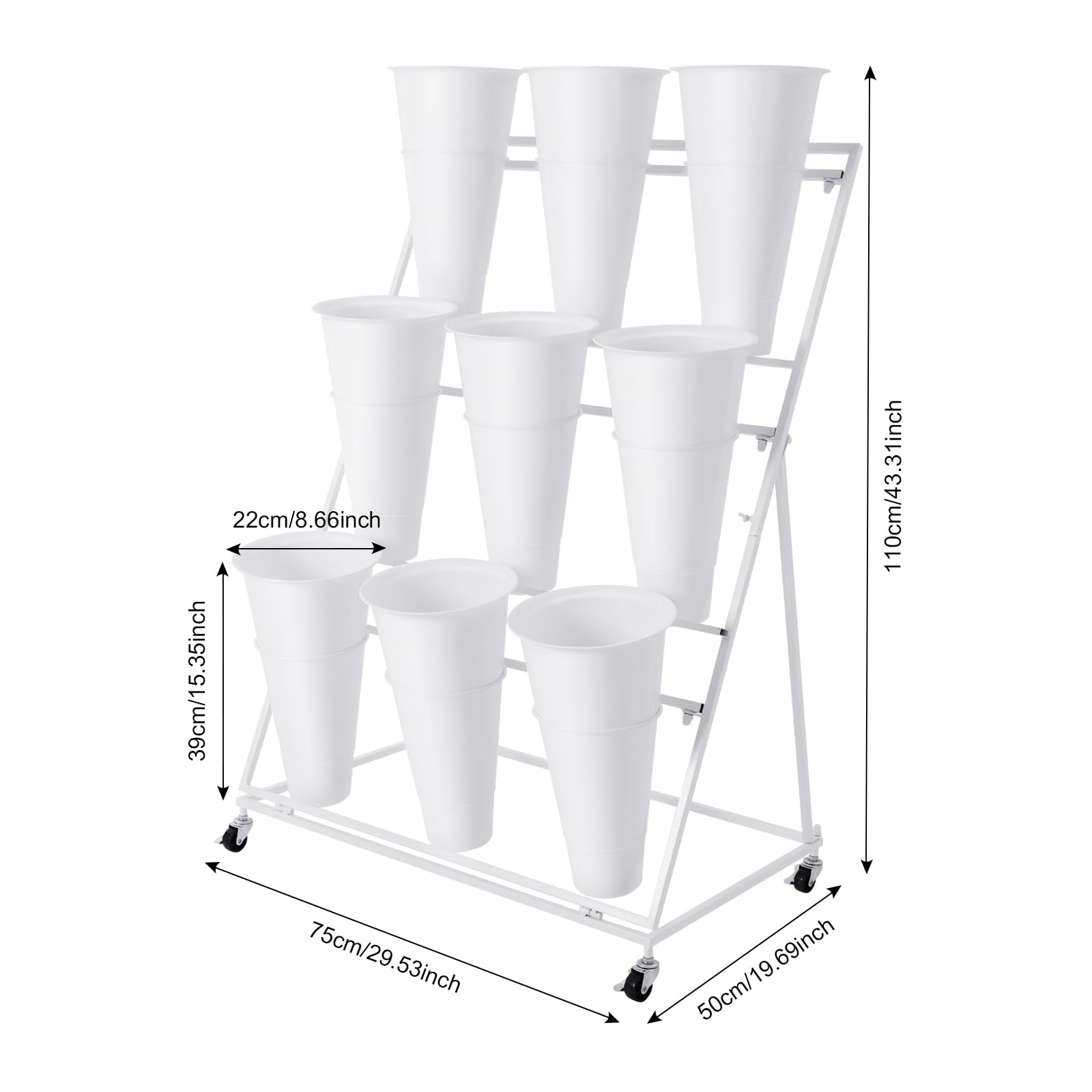 - TIERED DESIGN: Features 3 levels with 9 removable plastic buckets perfect for displaying flowers, plants, and bouquets in an organized, space-efficient manner