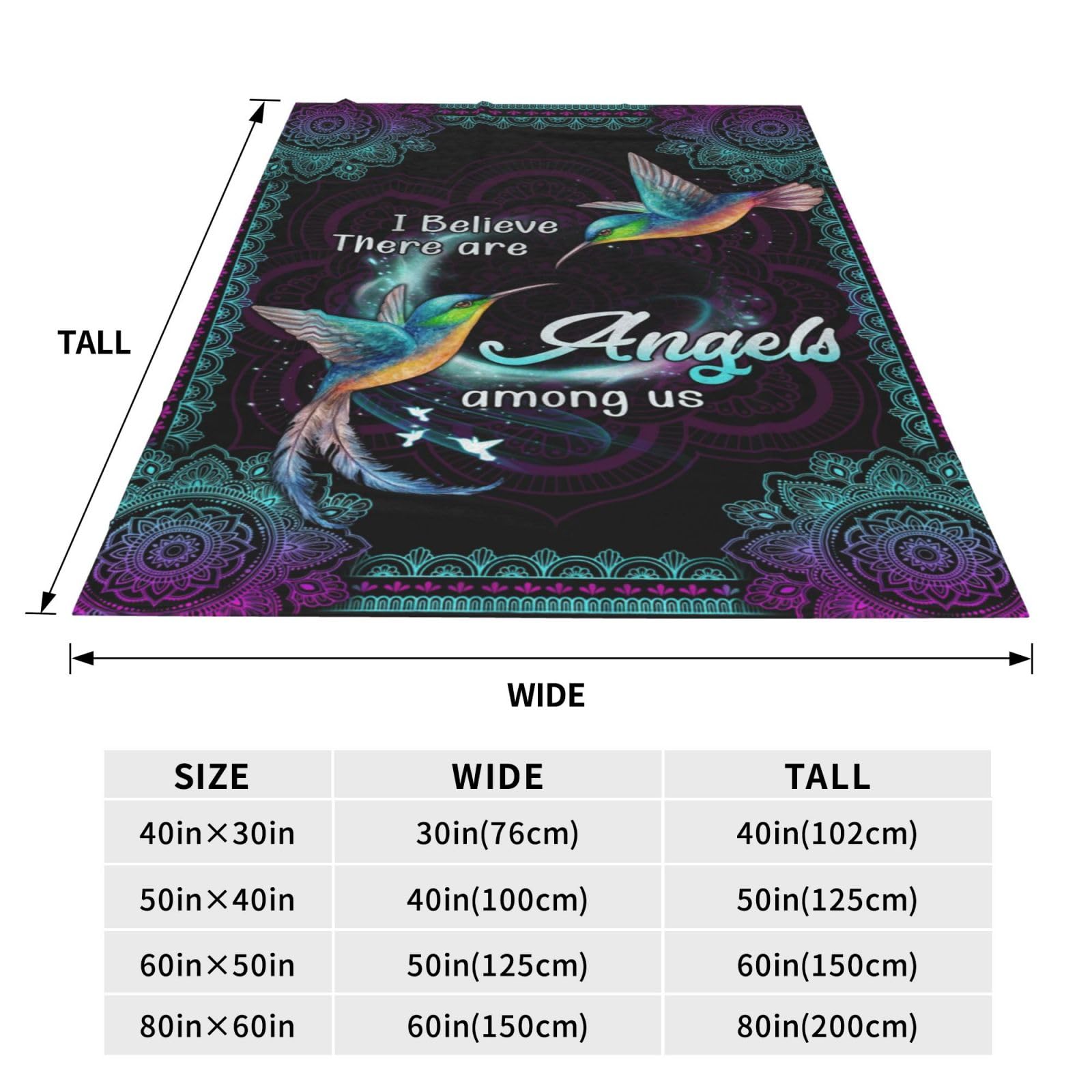 Hummingbird Blanket Heaven Hummingbird Throw Blanket I Believe Inspirational Blanket Gifts for Girls Boys Winter Bedding Super Warm Soft Plush Fleece Flannel Blanket for Kids Adults Men Women 50"X40"