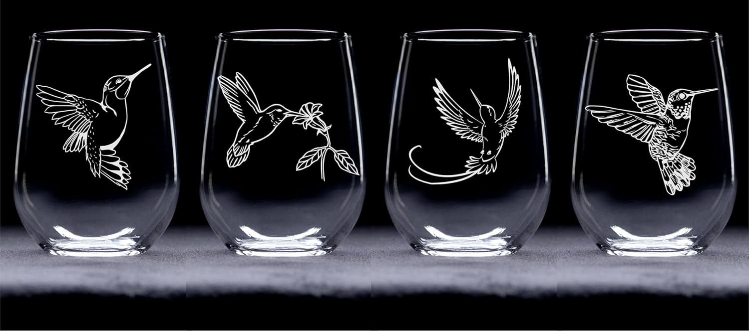 Hummingbird Stemless Wine Glass Set - Hummingbird Themed Gift for Women and Men - 4 Pieces