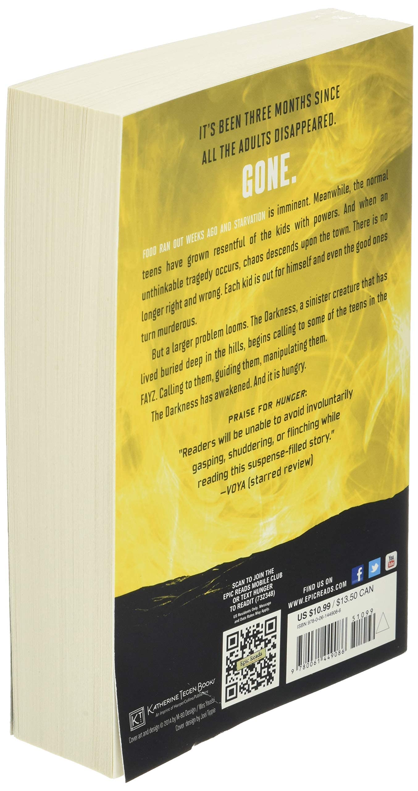 It's been three months since all the adults disappeared. Gone. Food ran out weeks ago and starvation is imminent. Meanwhile, the normal teens have grown resentful of the kids with powers. And when an unthinkable tragedy occurs, chaos descends upon the town. There is no longer right and wrong. Each kid is out for himself and even the good ones turn murderous. But a larger problem looms. The Darkness, a sinister creature that has lived buried deep in the hills, begins calling to some of the teens in the FAYZ. Calling to them, guiding them, manipulating them.