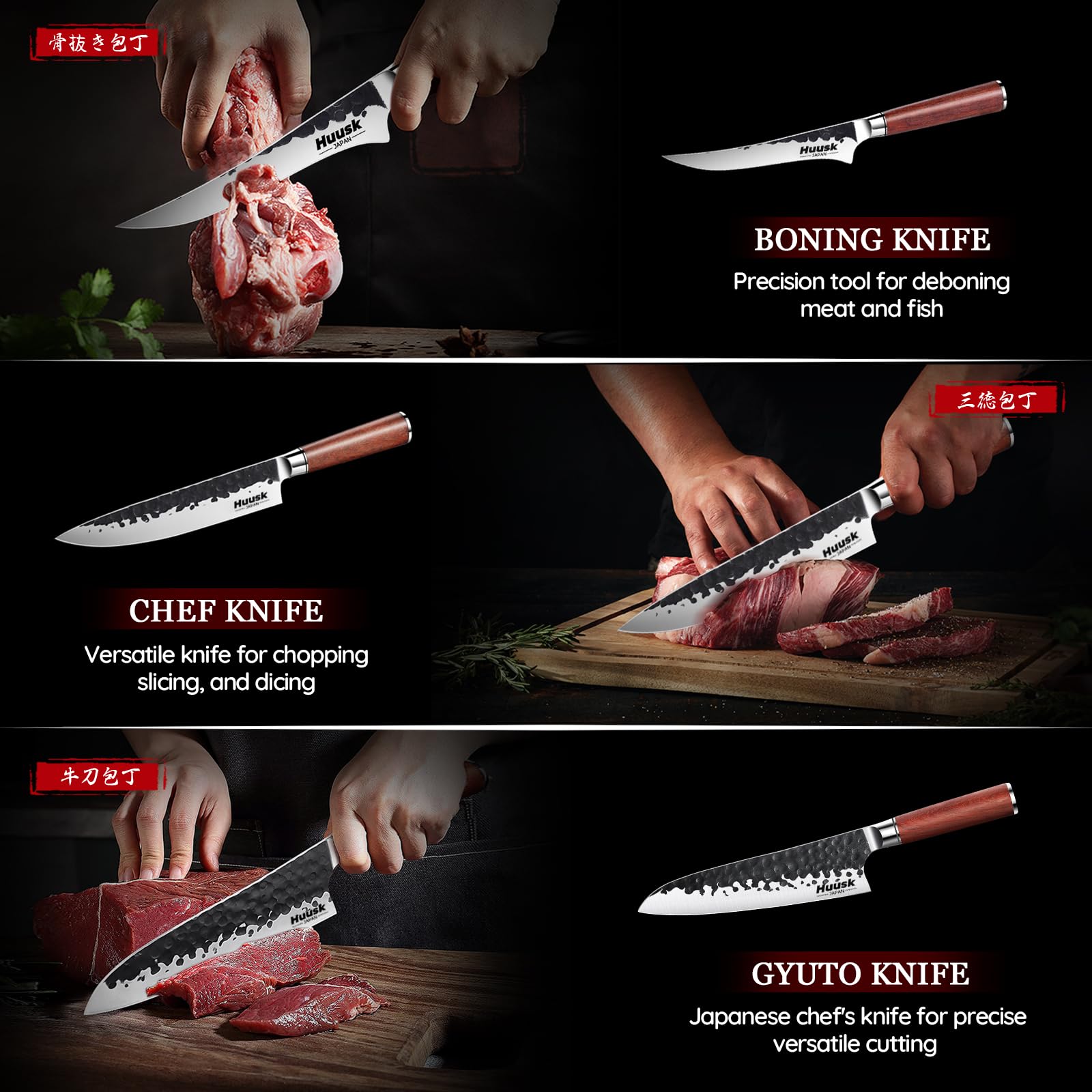 - 【Versatile Utility】 – Whether you're slicing bread, chopping vegetables, or deboning meat, Huusk japanese kitchen knife set is designed to meet all your culinary needs. The combination of different knife types in this set makes it a versatile choice for both home cooks and professional chefs.