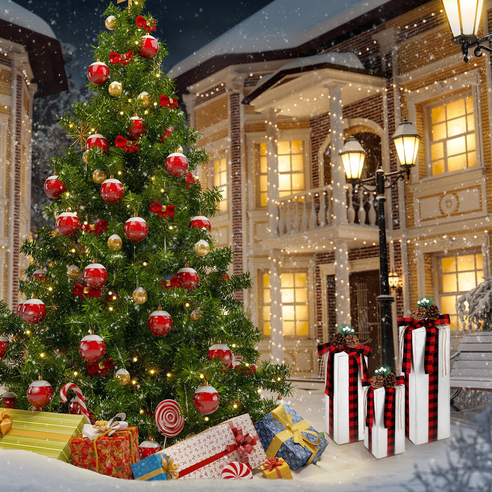 These faux Christmas presents contain classic Christmas elements, such as buffalo plaid bows, pine cones and more, making them look novel and interesting, echoing your Christmas sentiments.