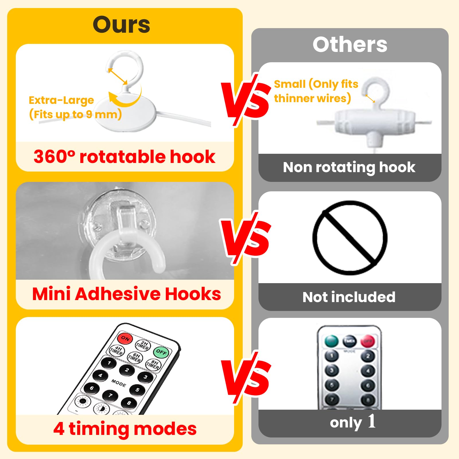 - 8 Modes and Timer: Unlike others, our 17-Keys remote added 4 timing modes (2/4/6/8 hours on, 22/20/18/16 hours off); 8 different flash modes to choose from, and you can adjust the brightness by pressing 'dim' ,“+” and '-'; That are all controlled easily with a wireless remote from a distance of 10 to 15 meters, aim at the USB receiving direction when you press; All is in your control