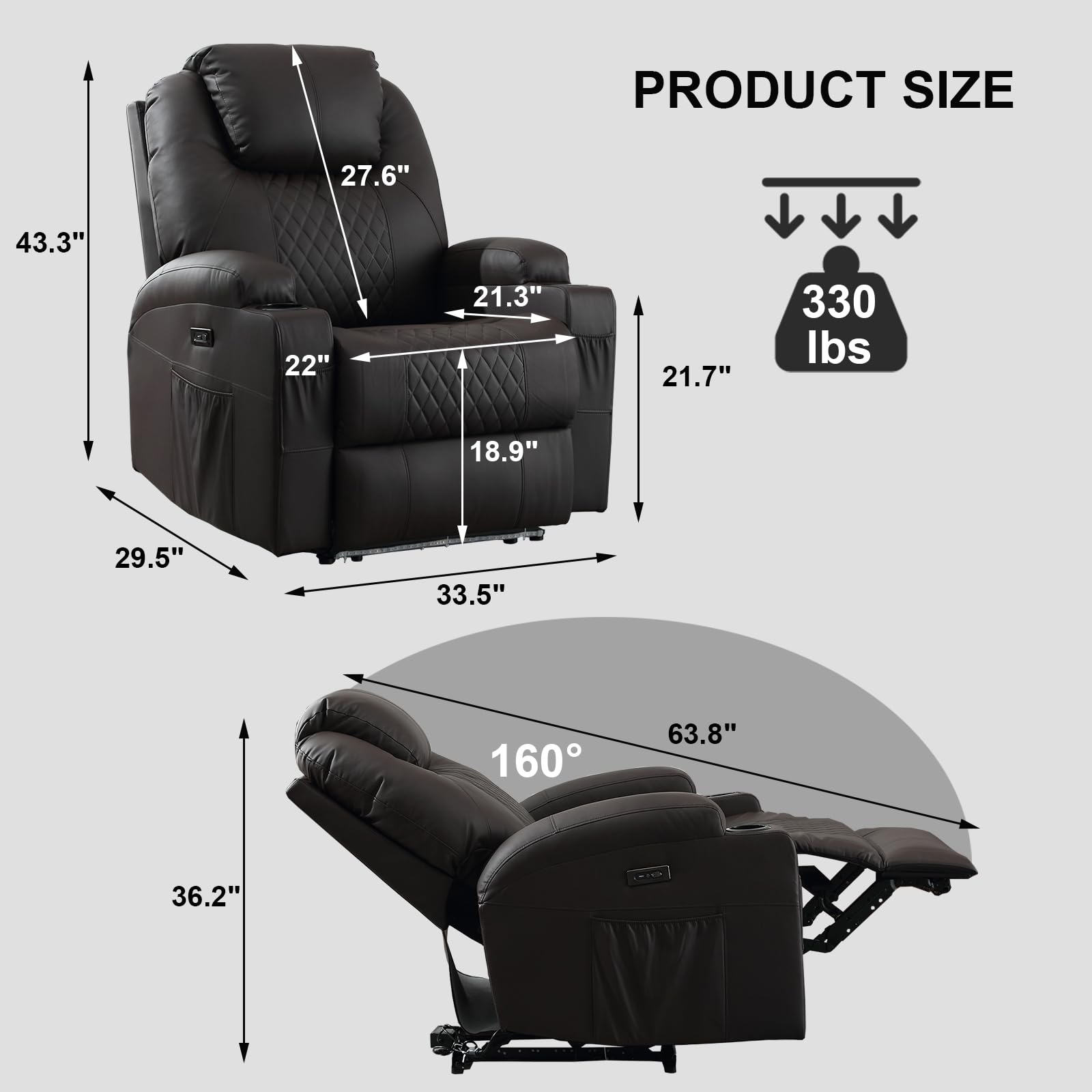 - Power Recline: This recliner can function as a versatile lounge chair for daily relaxation and as a luxurious home theater seat. With an electric button for smooth reclining between 100° to 150°, feature ensures effortless operation for users of all ages