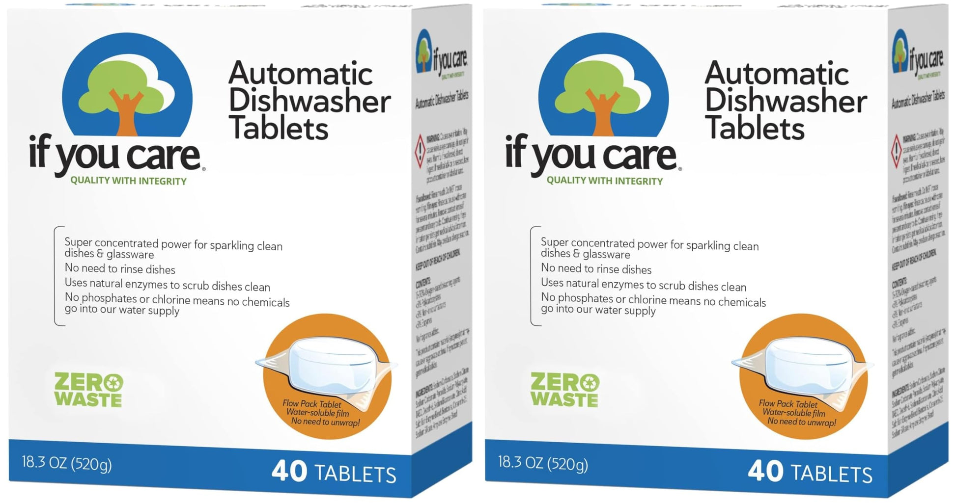 If You Care Dishwasher Tablets 40 Count - Powerful, Plant Based, Concentrated, Biodegradable, Natural Dish Cleaner Detergent, Dishwashing Soap Tabs