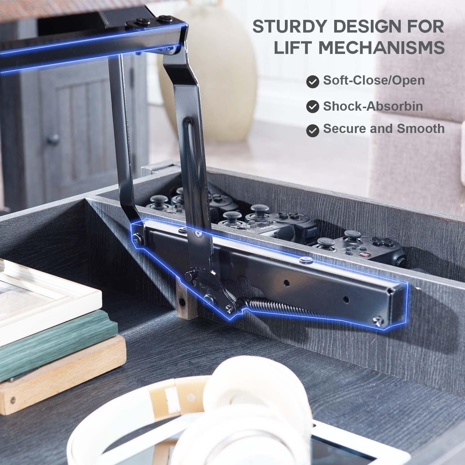 - Lift Top Design: This lift top coffee table allows for easy adjustment of different heights and provides both enclosed and open storage spaces. Its sturdy metal lift structure ensures smooth and even lifting and lowering of the tabletop, providing a perfect workspace for your office needs. Large hidden compartments underneath the coffee table top store everyday items such as remotes, books, mugs, game consoles, etc. and keep dust out.