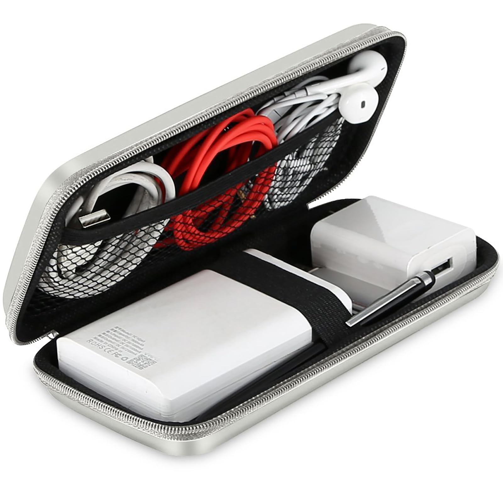 iMangoo Electronics Organizer Travel Case Small Size Travel Essentials for Women Pouch Tech Purse Hard Protective Shockproof Carrying Charger Power Bank Cable Accessories, 6.5x3.2x1 In (Silver)