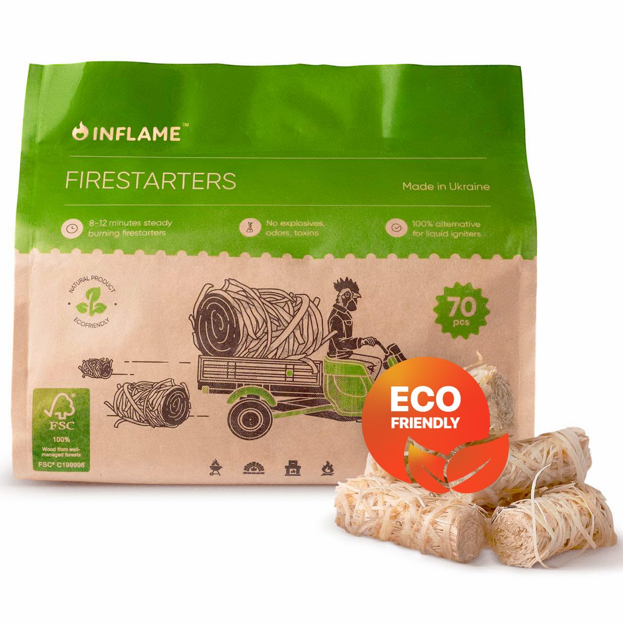 Inflame Fire Starters 130 pcs Fire Starters for Campfires, Grill, BBQ, Fireplace, Woodstove - Charcoal Starter - Waterproof, Weather-Resistant - Natural Wood Fireplace Starters