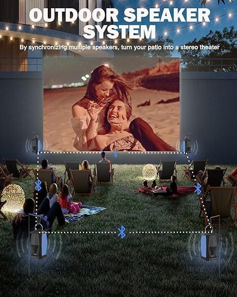- Effortless One-Touch Multi-Speaker Sync: Supports wireless synchronization of multiple speakers without the need for apps or cables. Equipped with an advanced operating system, pairing is as simple as one touch, delivering an exceptional audio experience for decks, patios, gardens, BBQs, movie nights, and camping.