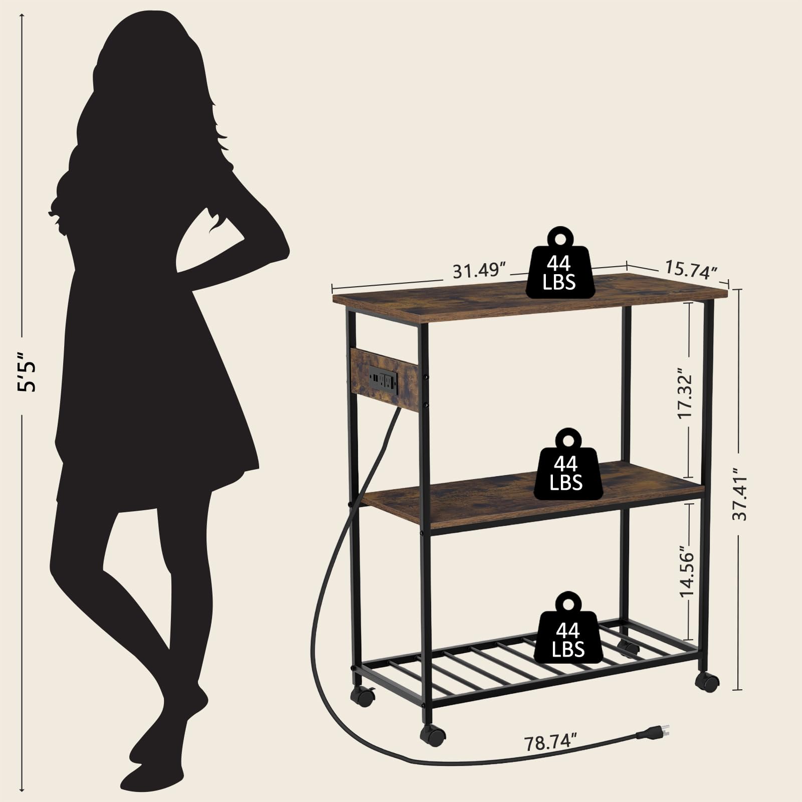 INHABIT UNION Kitchen Island with Power Outlet, 31.49" L Rolling Kitchen Cart with 3 Tier, Industrial Island Counter with Large Workstation, for Kitchen, Dining Room, Rustic Brown and Black