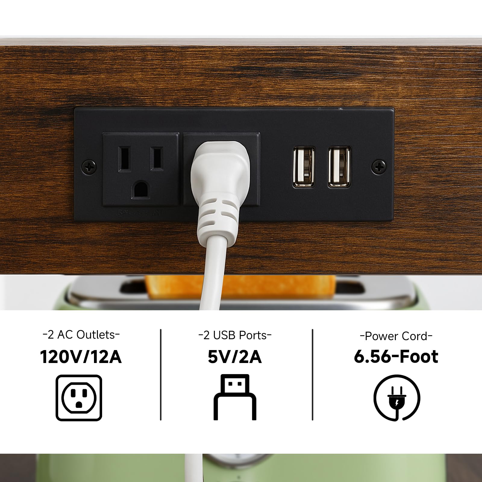 - [Kitchen Island with Power Outlet] : This rolling kitchen cart equipped with power outlets,2 AC outlets,2 USB ports,available for various kitchen appliances that you don't need an extra power panel to charge the coffee maker, 6.5' long power cord can also be conveniently.