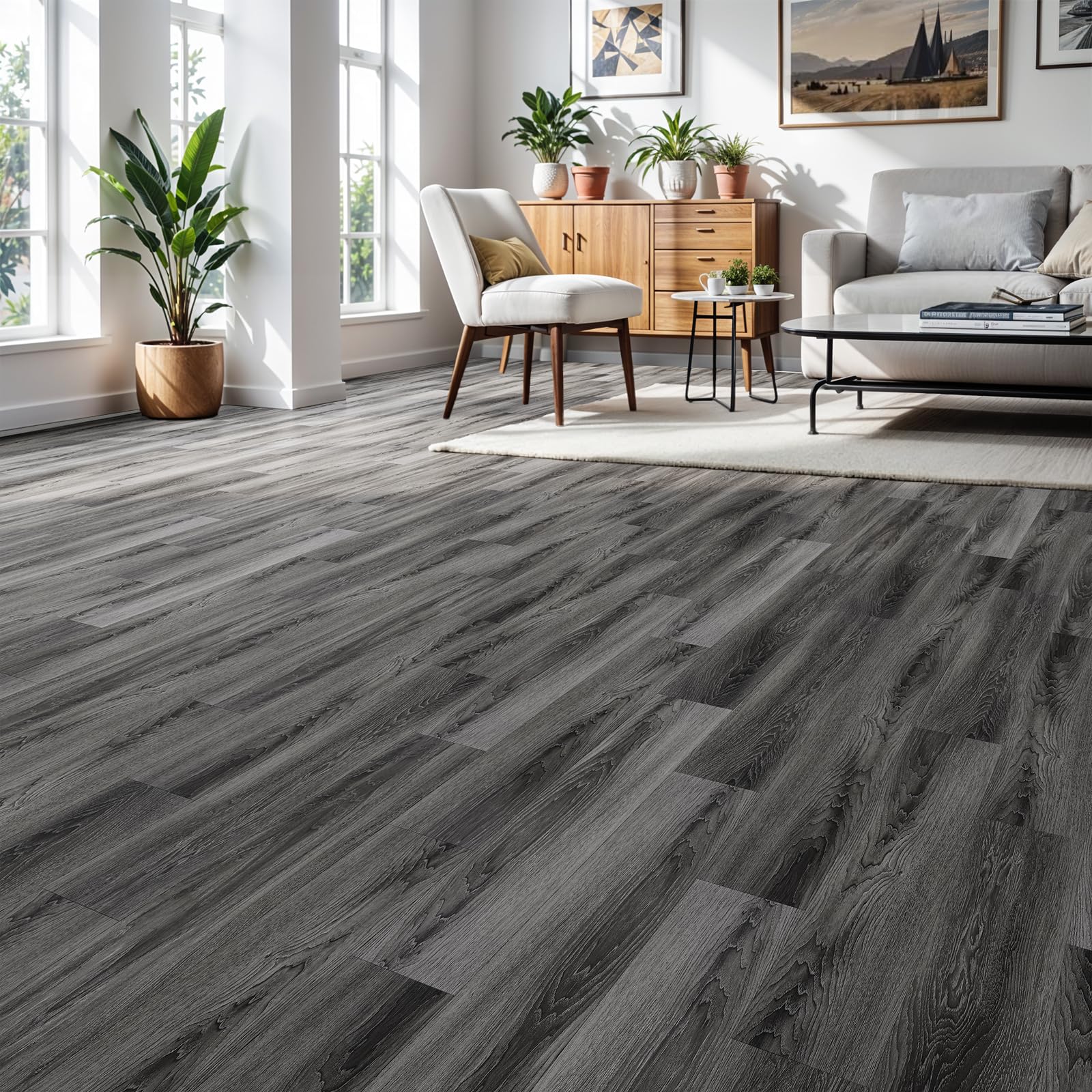 INMOZATA Peel and Stick Floor Tile Vinyl Flooring, Waterproof Vinyl Plank Flooring 36-Pack 54 Sq.Ft Wood Grain Self Adhesive Peel and Stick Flooring for Bedroom, Living Room, Kitchen, RV(Deep Gray)