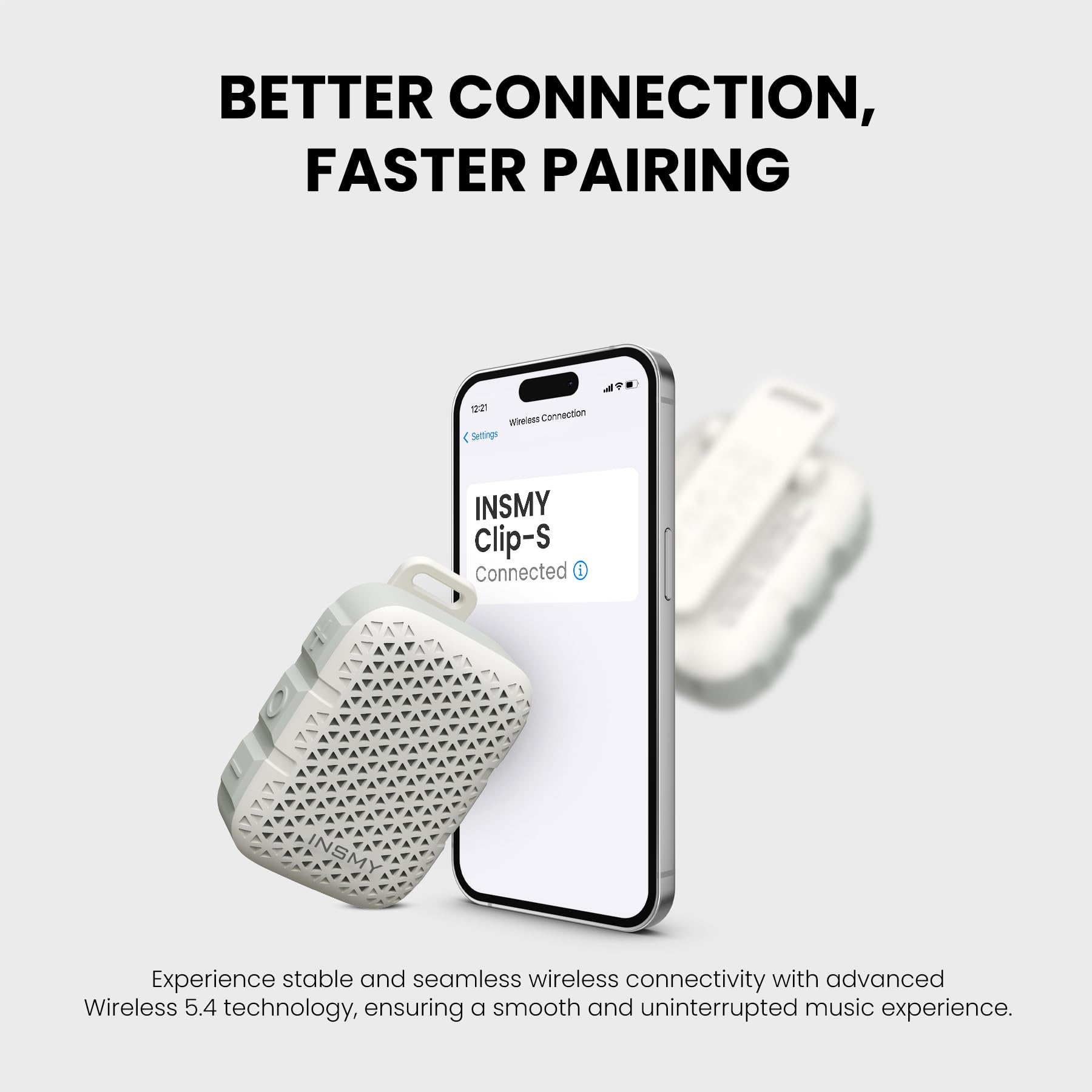 INSMY Wearable Bluetooth Speakers,IP67 Waterproof,Clip-On Portable Small Personal Speaker/Clean Sound/Stereo Pair/Wireless 5.4/ENC Built-in Mic/Lightweight for Outdoor Golf Work Pool (White)