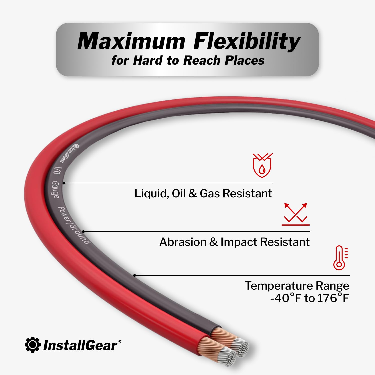 InstallGear 16 Gauge Speaker Cable - 100 ft True Spec Soft Touch Audio Wire for Car Stereos, Home Theater, Surround Sound - Flexible 16 AWG Speaker Wire - Easy Installation - Red/Black