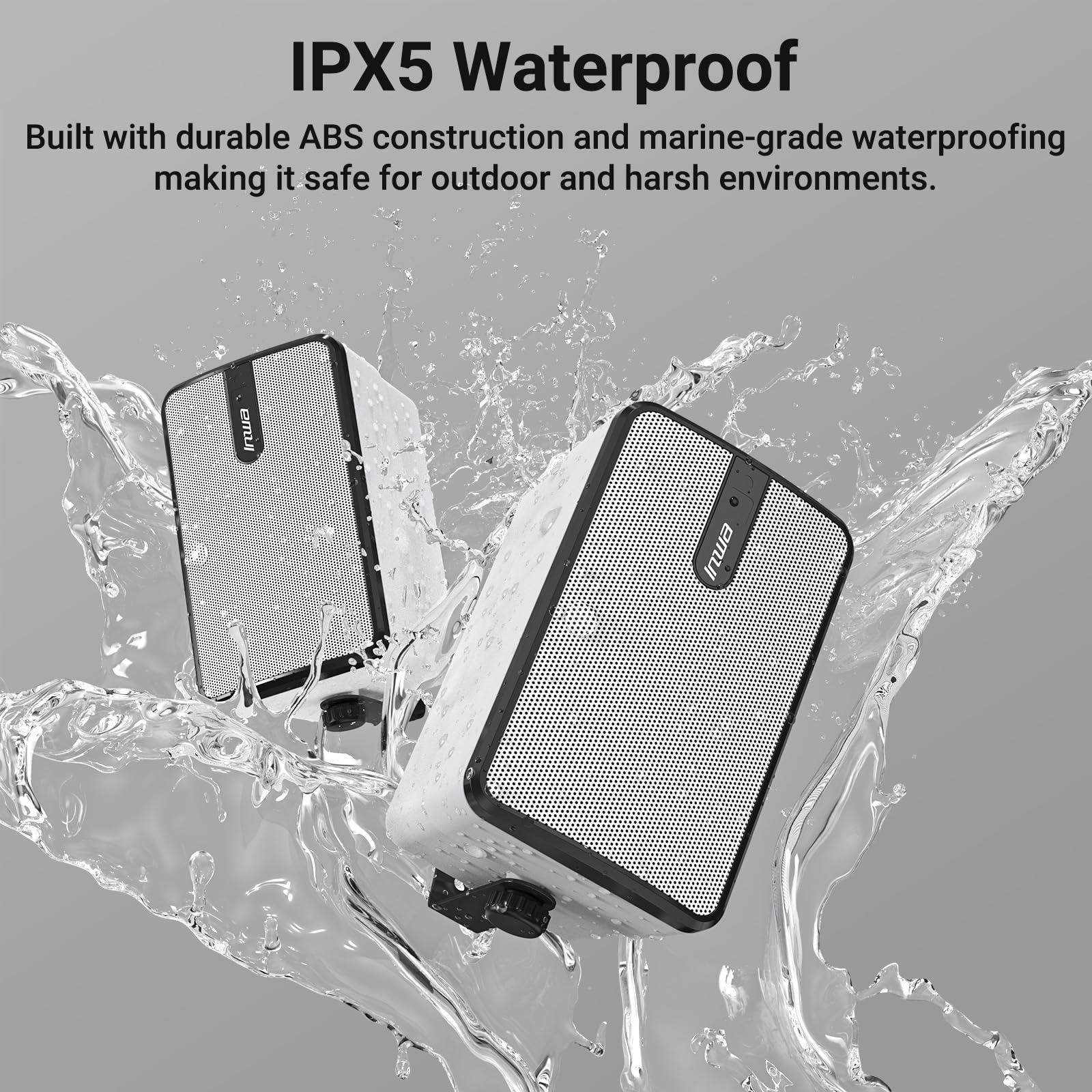 - ππ£π«π± π ππ₯ππ‘π ππ₯πππ πͺππ§ππ₯π£π₯π’π’π: This wall mount bluetooth speaker can stand up to splashes, spills, and light rain. Great for using outdoor all weather. The ABS mesh grille enclosure protecting it from the harsh weather and preserving sound integrity.