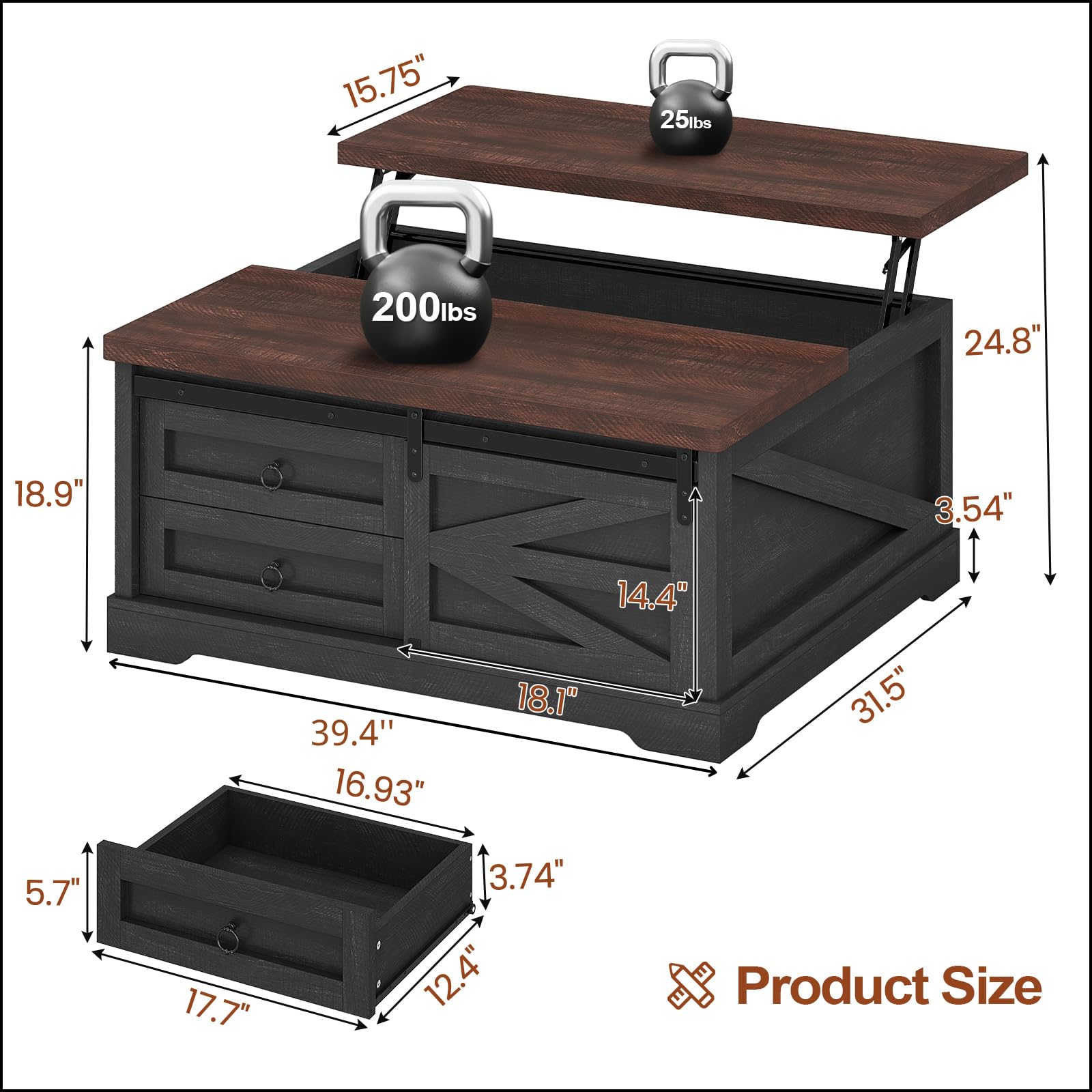 - 【Farmhouse Coffee Table】This lift top coffee table features a classic barn door design with black metal accents that add a touch of vintage charm. It is a perfect blend of modern country and retro farmhouse styles. The unique square design complements your sofa well and fits perfectly in both small and large spaces.