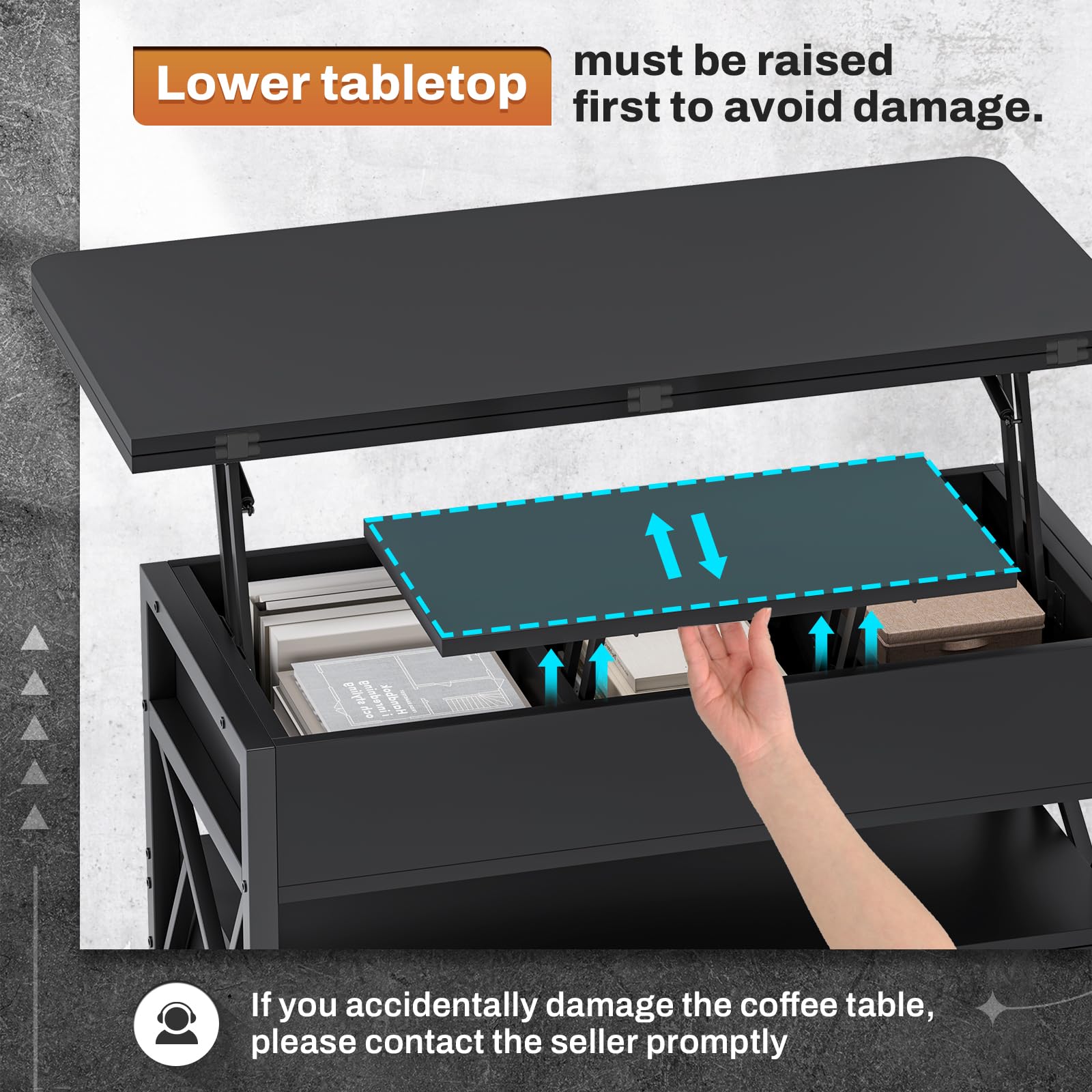 - 【Easy Assemble & After-sales Service】To make assembling this sturdy lift top coffee table as effortless as possible, we have included clear and detailed instructions, numbered parts. If your item arrives damaged, scratched or missing part, please feel free to contact us, we will send you free replacement or offer a partial refund.
