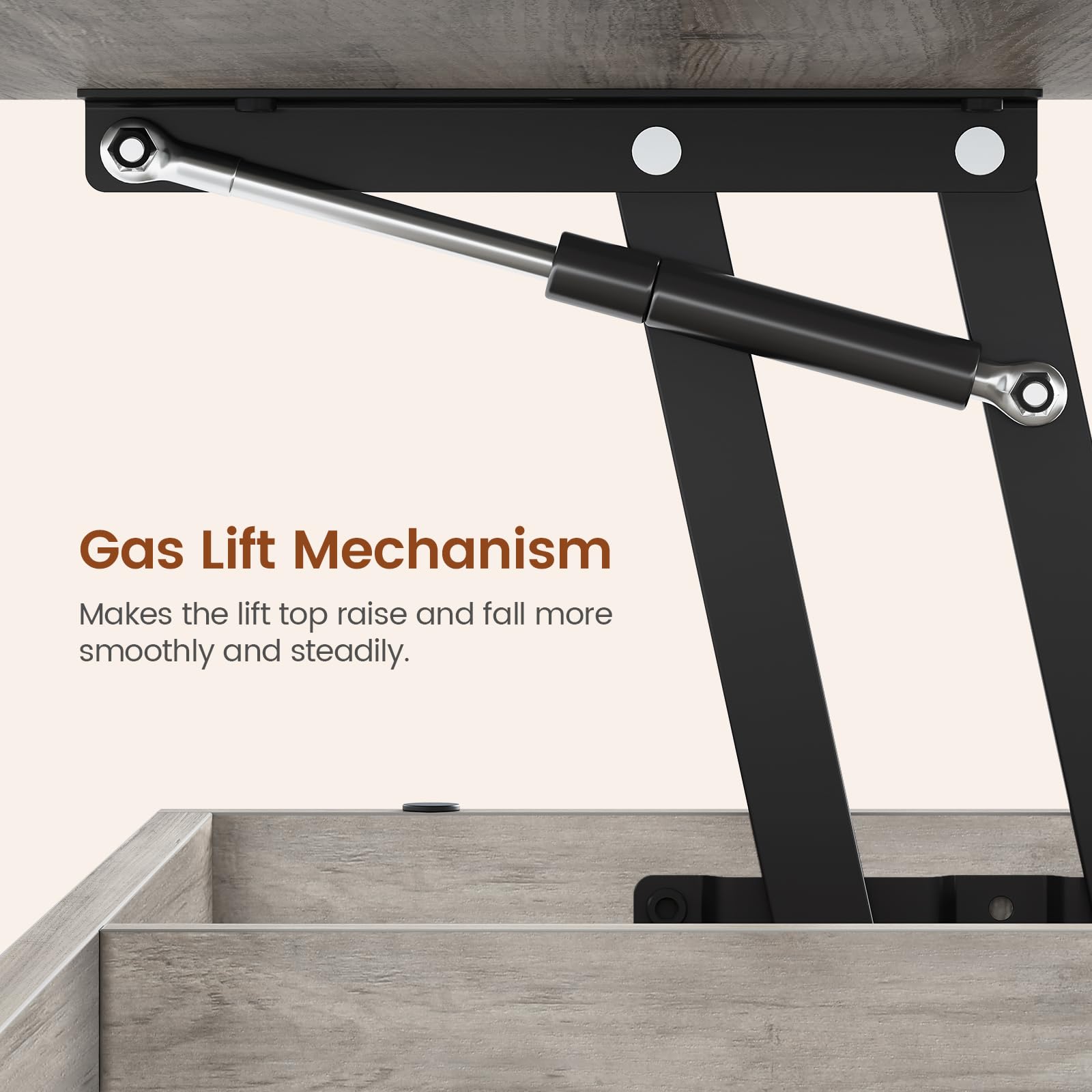 - 【Quality Upgrade】High-quality metal gas support mechanism, better than the traditional compression spring to make the table easy to lift, with no noise. Coffee table with storage can be stably supported under greater pressure--hold up to 166lbs. Using P2 engineering wood to create a coffee table that can be used for a long time for you.