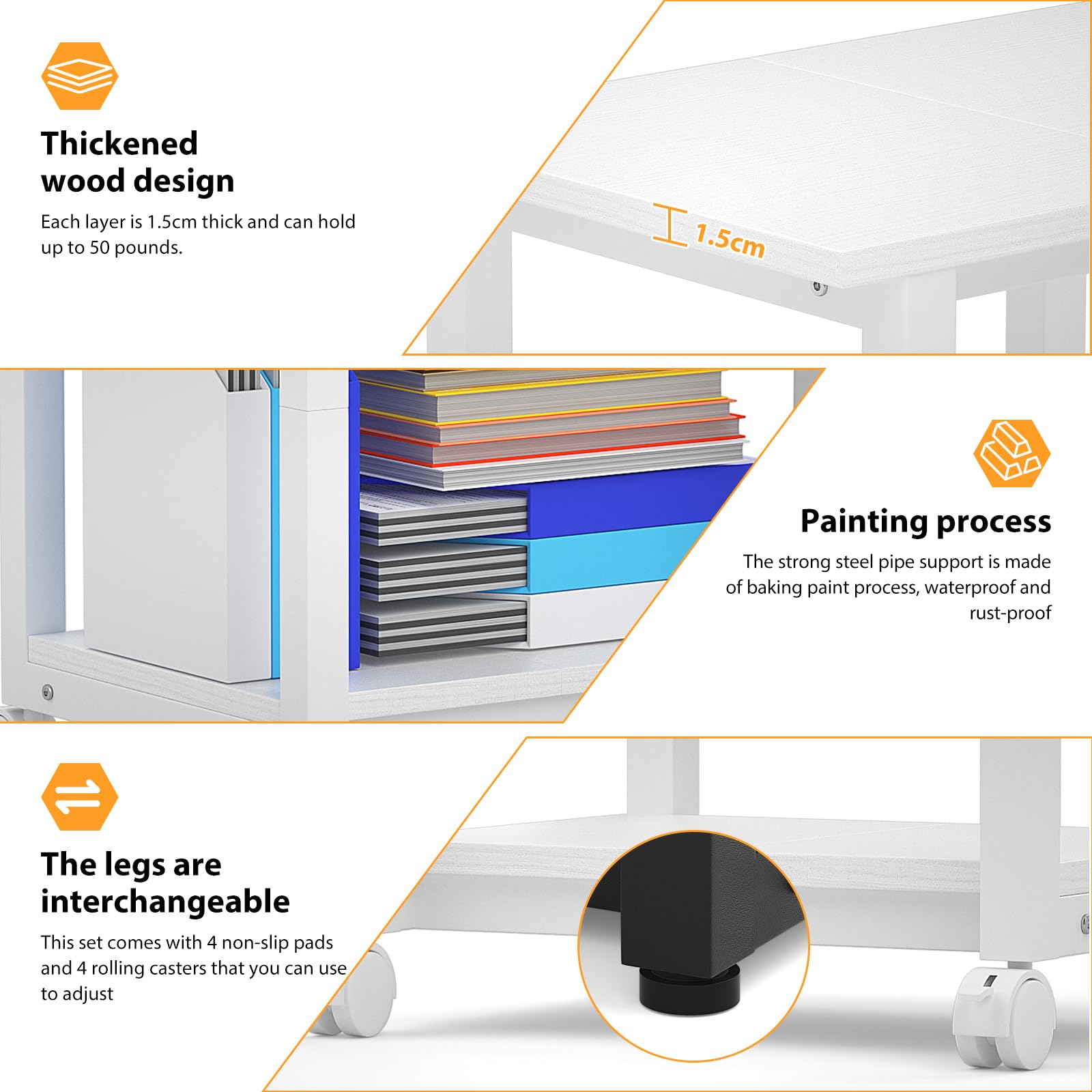 ITHWIU Under Desk Printer Stand, 2-Tier 19.5''x 16''x 22'' Rolling Printer Stand Storage Shelves for Printer, Scanner, Fax Machine, Files, Books with Anti-Skid Feet for Home, Office, White