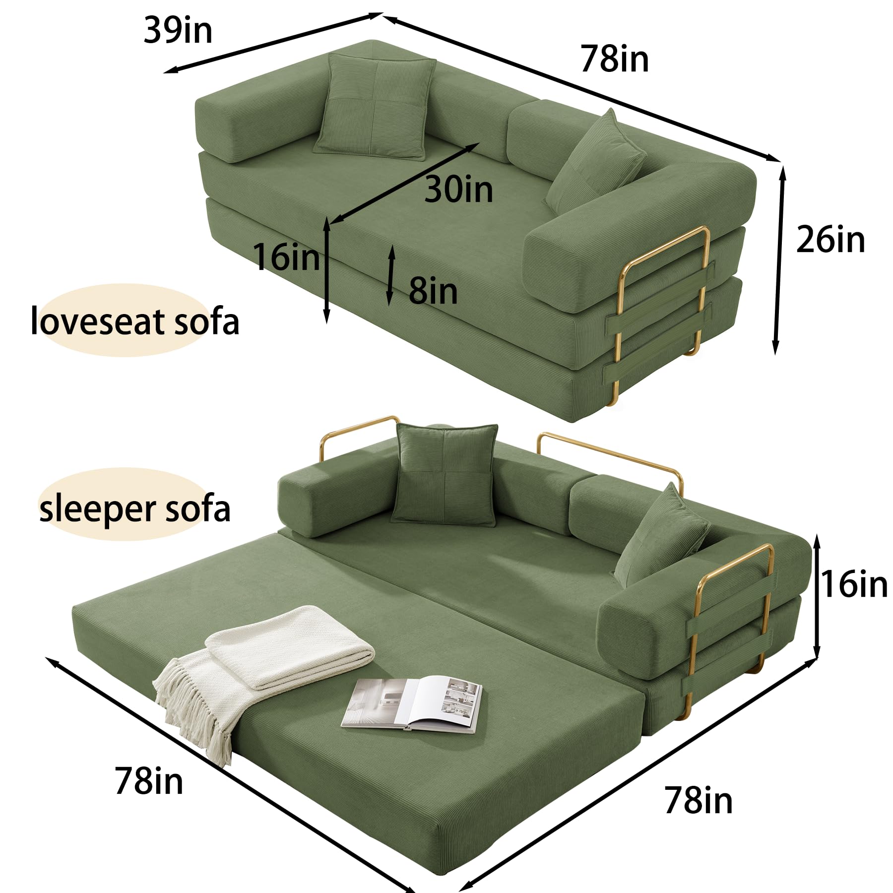 - Generous Dimensions: With a sofa size of 78'L x 39'W x 26'H and a sleeper size of 78'L x 78'W x 8.'H, the floor mattress couch offers spacious lounging and sleeping areas. Whether you’re relaxing or resting, this corduroy sofa bed ensures comfort for all occasions