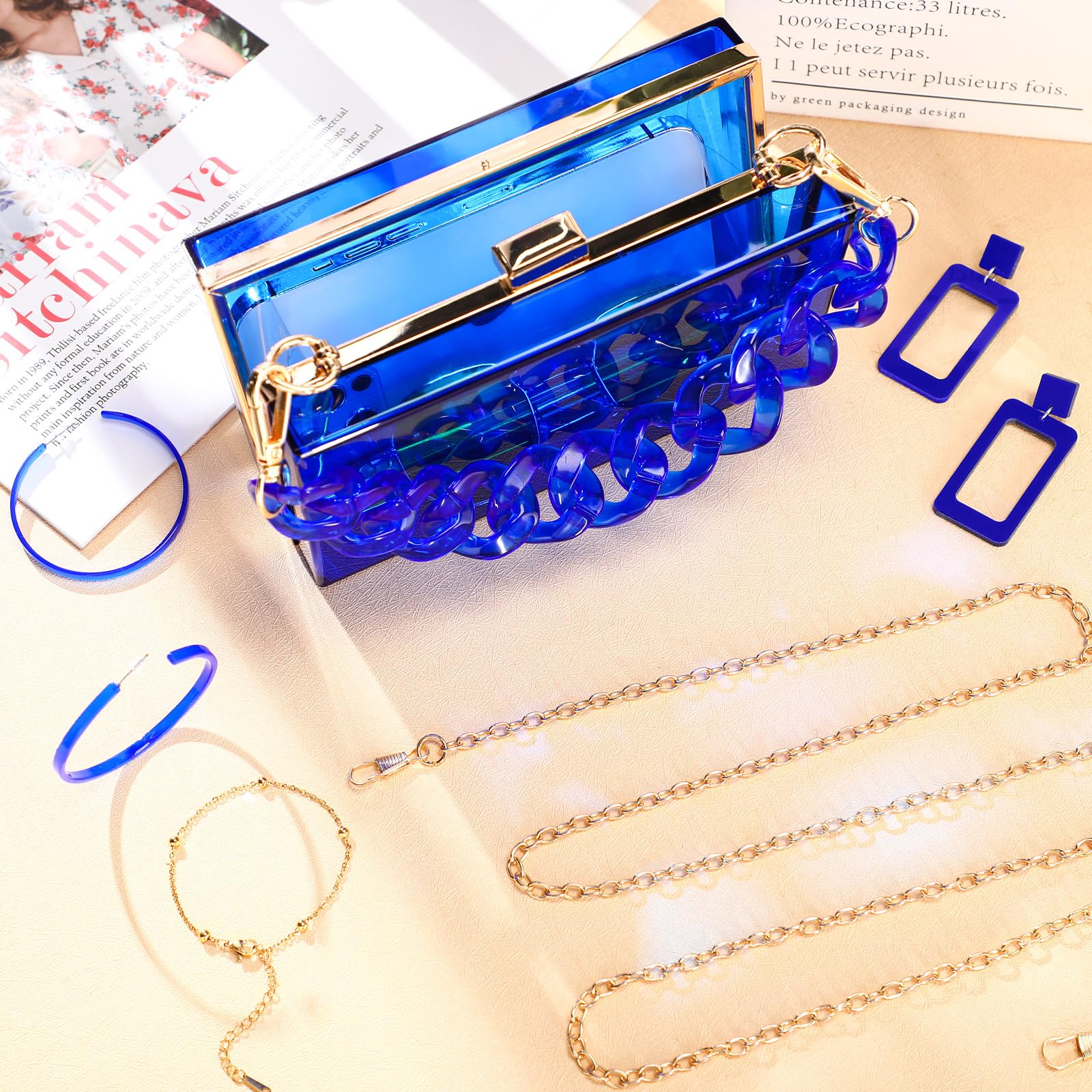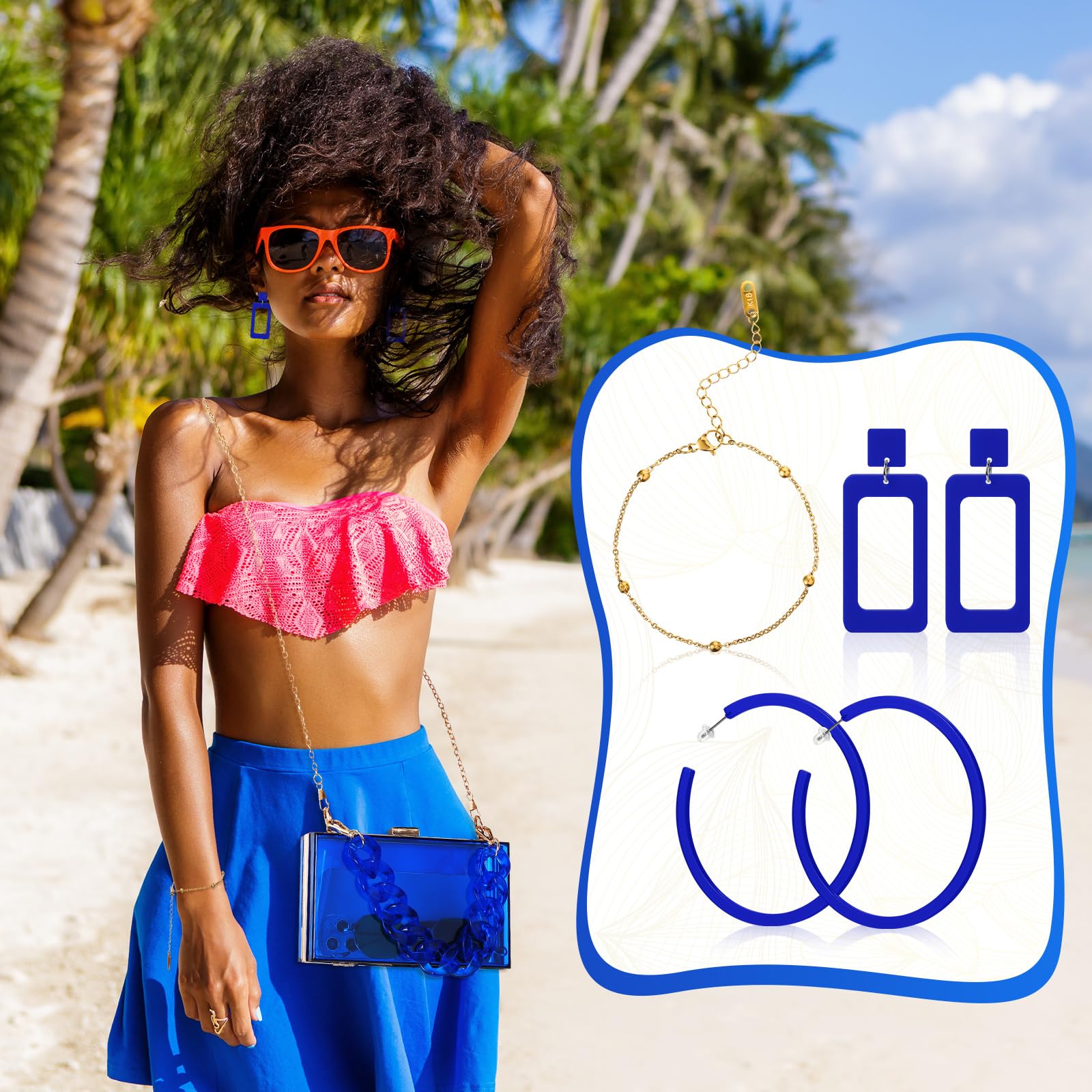 - Acrylic Purse Set: you will receive 1 piece of acrylic purse in blue, 2 pairs of earrings dangling, 1 piece of bracelet, a full set can meet your daily needs, and you can share with others