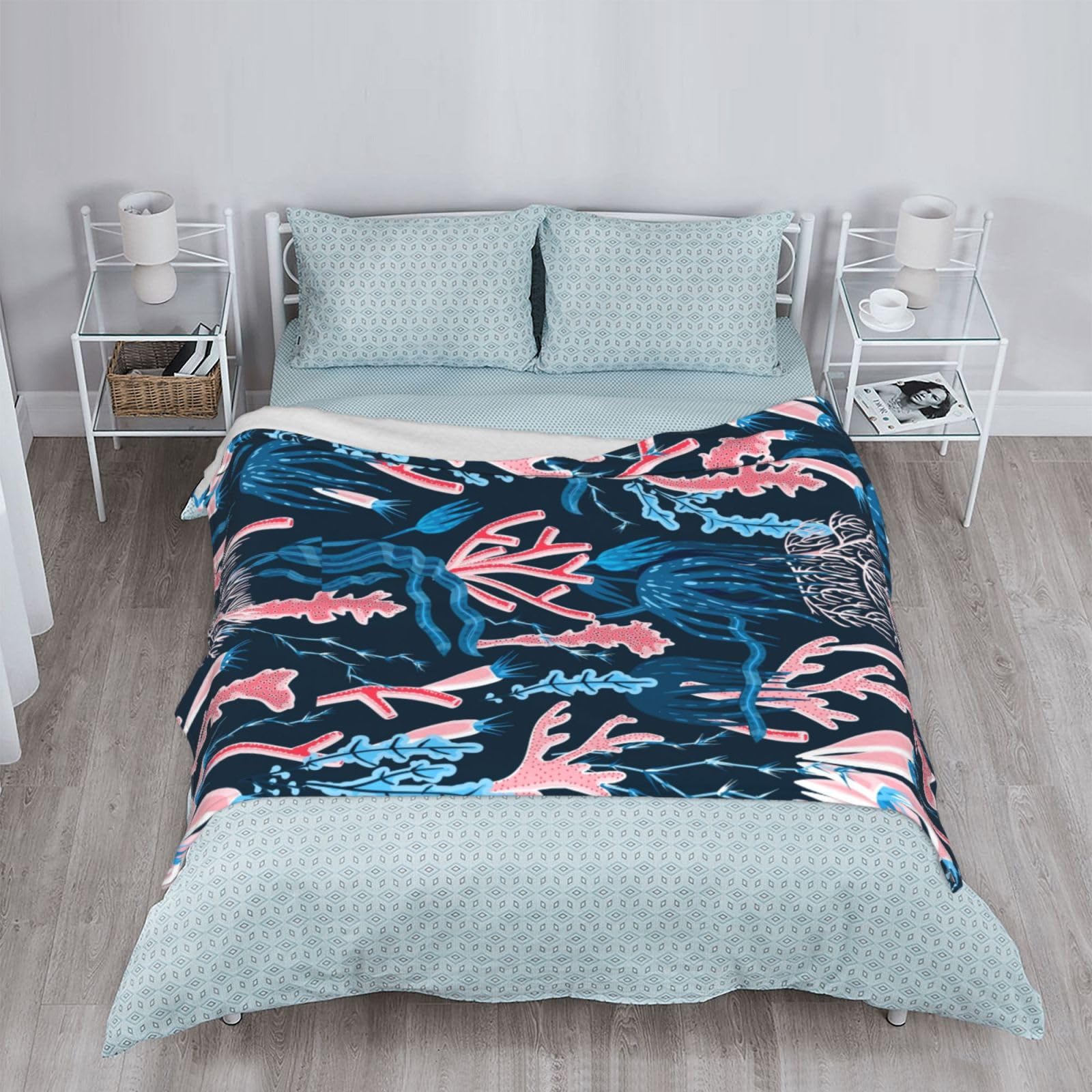 Jbofyee Coral Pattern Throw Blankets All Season Ultra Soft Warm Fleece Blanket for Home Bed Sofa Couch Chair Outdoor Travel Camping 50x40 Inch