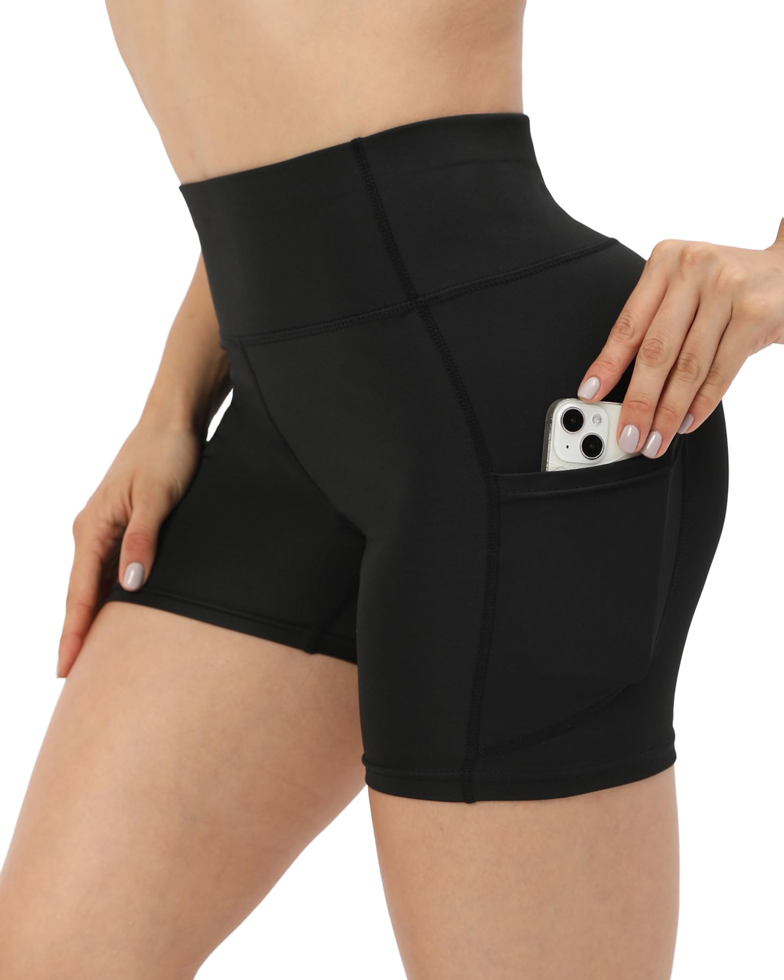 JCFSYXGS Workout Yoga Biker Shorts for Women with Pockets,Soft High Waisted Tummy Control Running Gym Shorts Black
