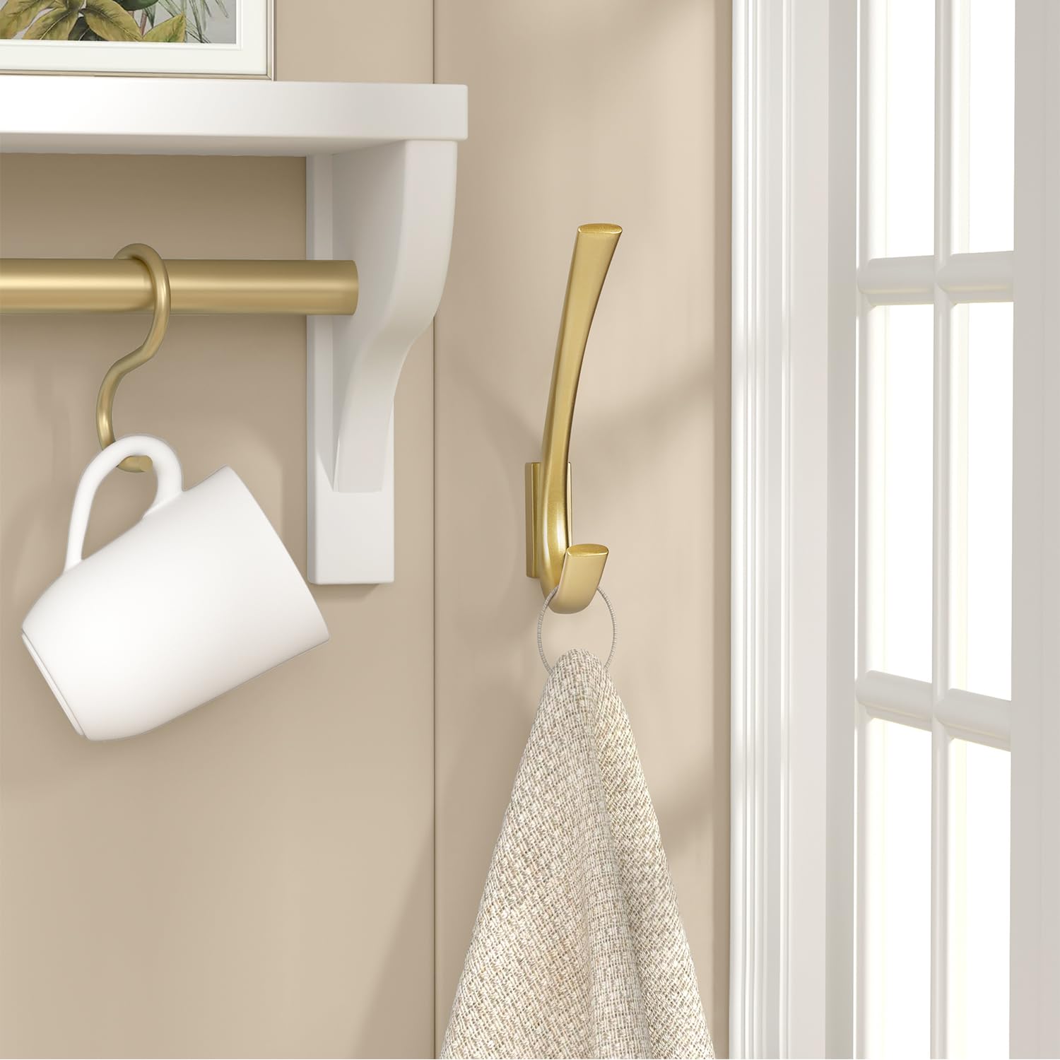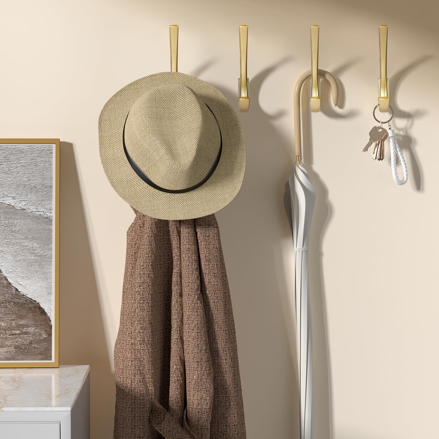 JCHOUS Heavy Duty Wall Hooks, 5.7 Inch Large Coat Hooks, 6 Packs Gold Towel Hooks for Hanging in Bathroom, Bedroom, Entryway, Kitchen, etc