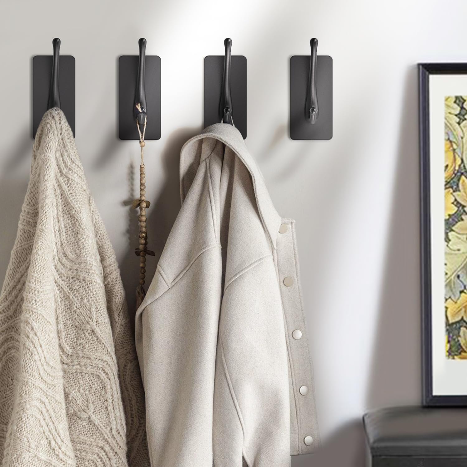 JCHOUS Towel Hooks, Solid Alloy Adhesive Wall Hooks for Hanging, Towel Hooks for Bathroom, RV, Kitchen, Closets, etc (Black, 4 Pack)