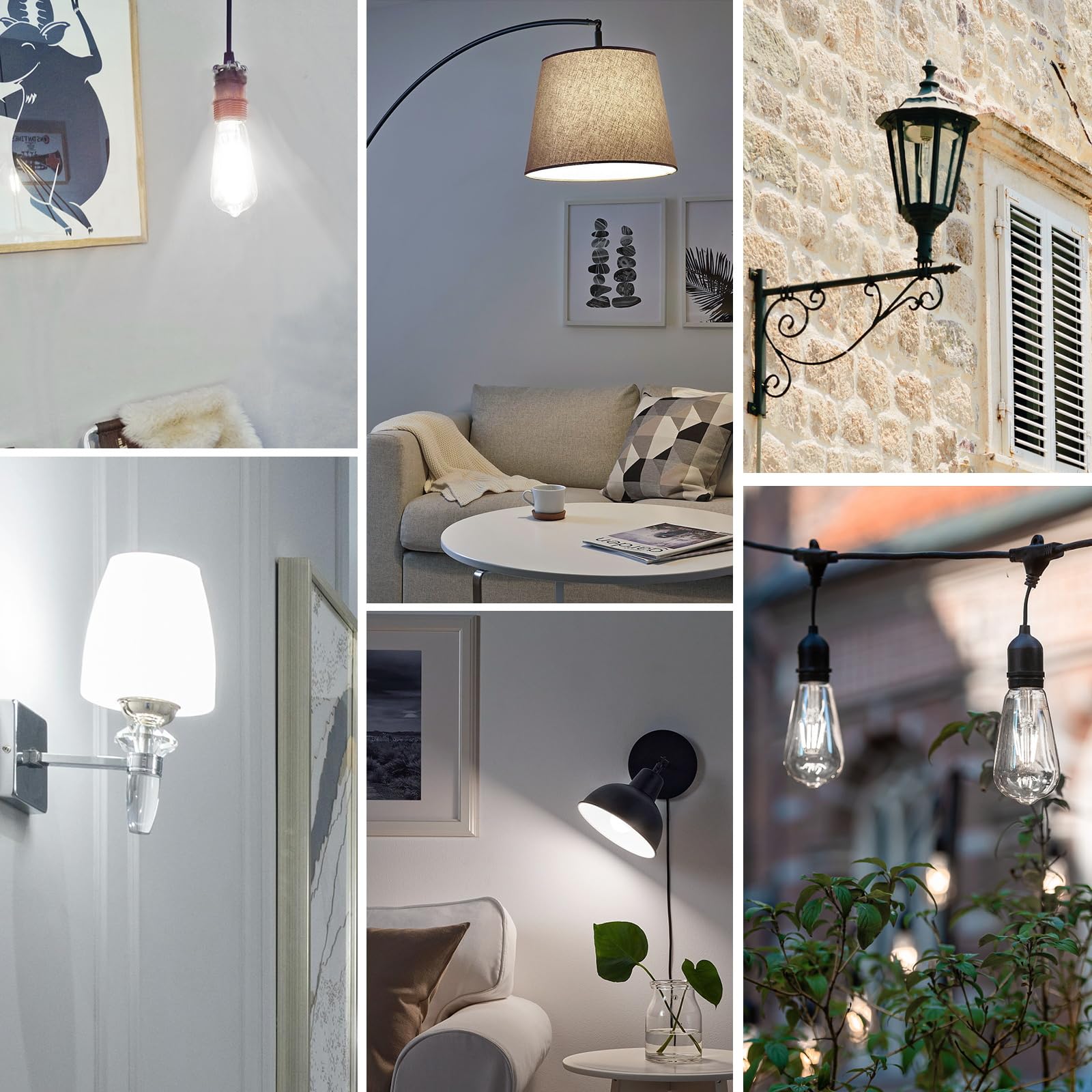 - Widely Used Edison Bulbs: The Edison LED light bulbs is E26 standard base, which can be directly installed in the fixture, suitable for most desk lamps, chandeliers, wall lamps, indoor and outdoor. It can be used as night lighting, reading, office, party and festive atmosphere decoration