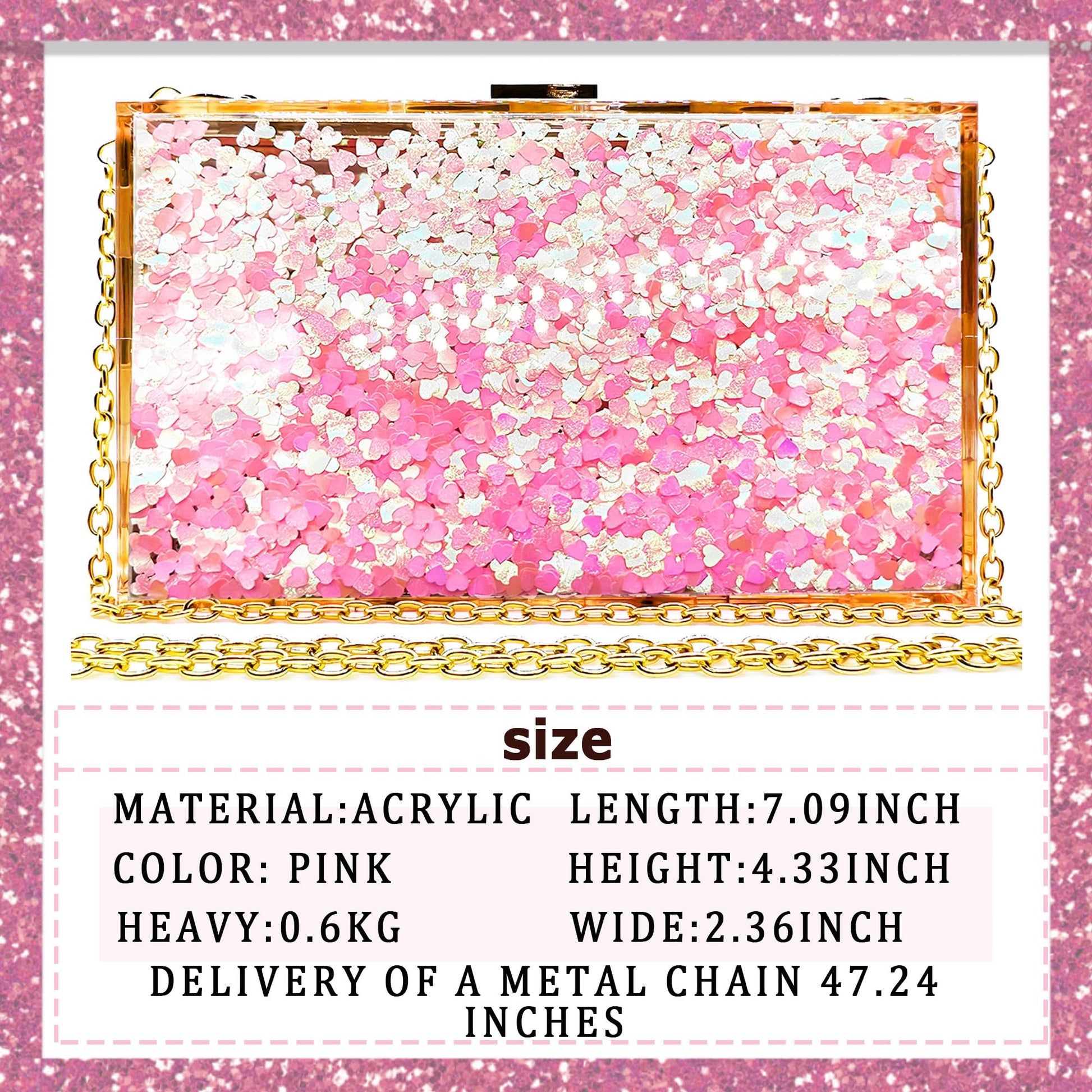JeVenis Womens Transparent Sequins Chain Clutch Evening Handbag Party Cross-body Purse (Love Pink)
