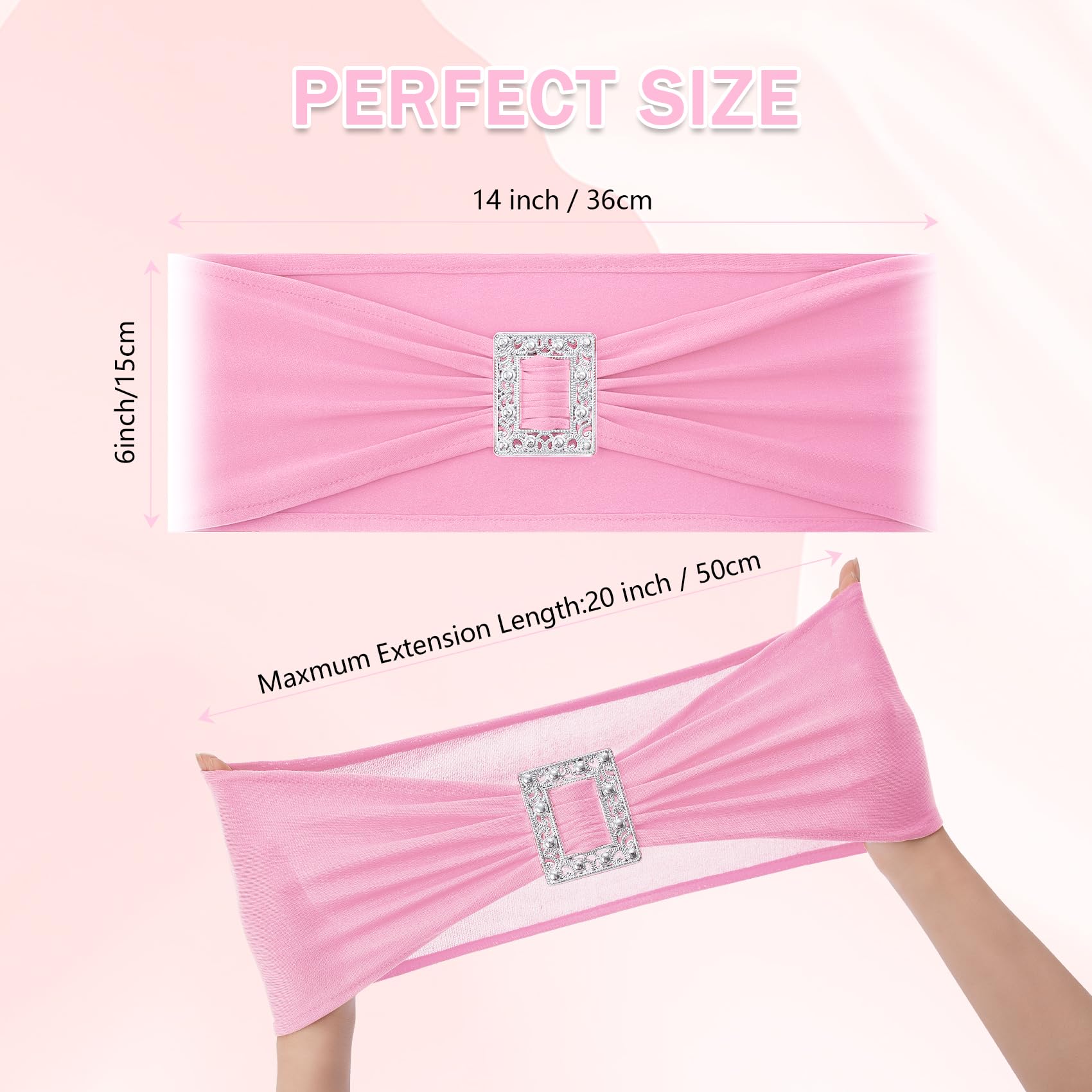 Joccun 30 PCS Spandex Chair Sashes Bows Stretch Chair Cover Band with Buckle Slider Universal Elastic Chair Ties for Wedding Banquet Party Event Decoration (Pink)