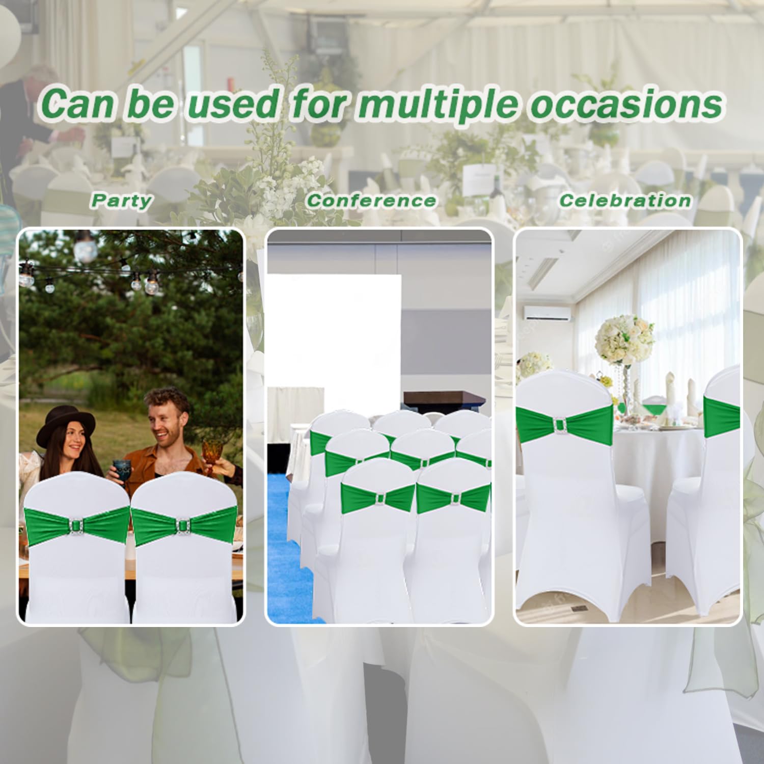 Joccun 60 PCS Spandex Chair Sashes Bows Stretch Chair Cover Band with Buckle Slider Universal Elastic Chair Ties for Wedding Banquet Party Event Decoration (EmeraId)