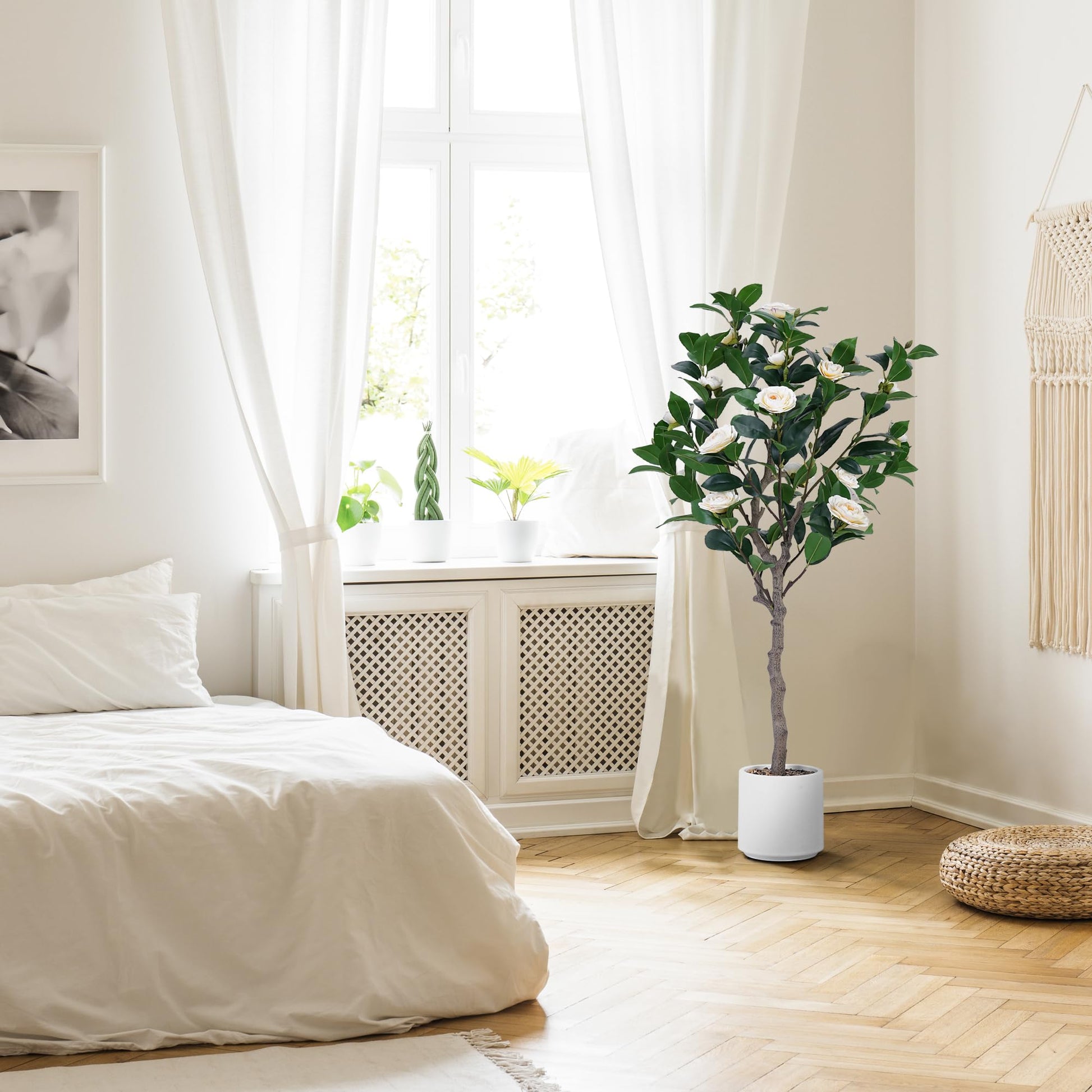 - Bringing Nature Indoors - Transform your space with our 4FT Artificial Camellia Tree, seamlessly bringing the beauty of nature indoors with its lifelike trunk, beautiful flowers, and elegant white planter—perfect for creating a serene, natural ambiance in any room