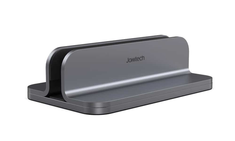 JOKItech Aluminum Laptop Vertical Stand Organizer, Sturdy Laptop Computer Holder Desktop Stand Compatible with New Retina Apple MacBook Pro/Air, Mac mini and iPad Pro - Spacegrey