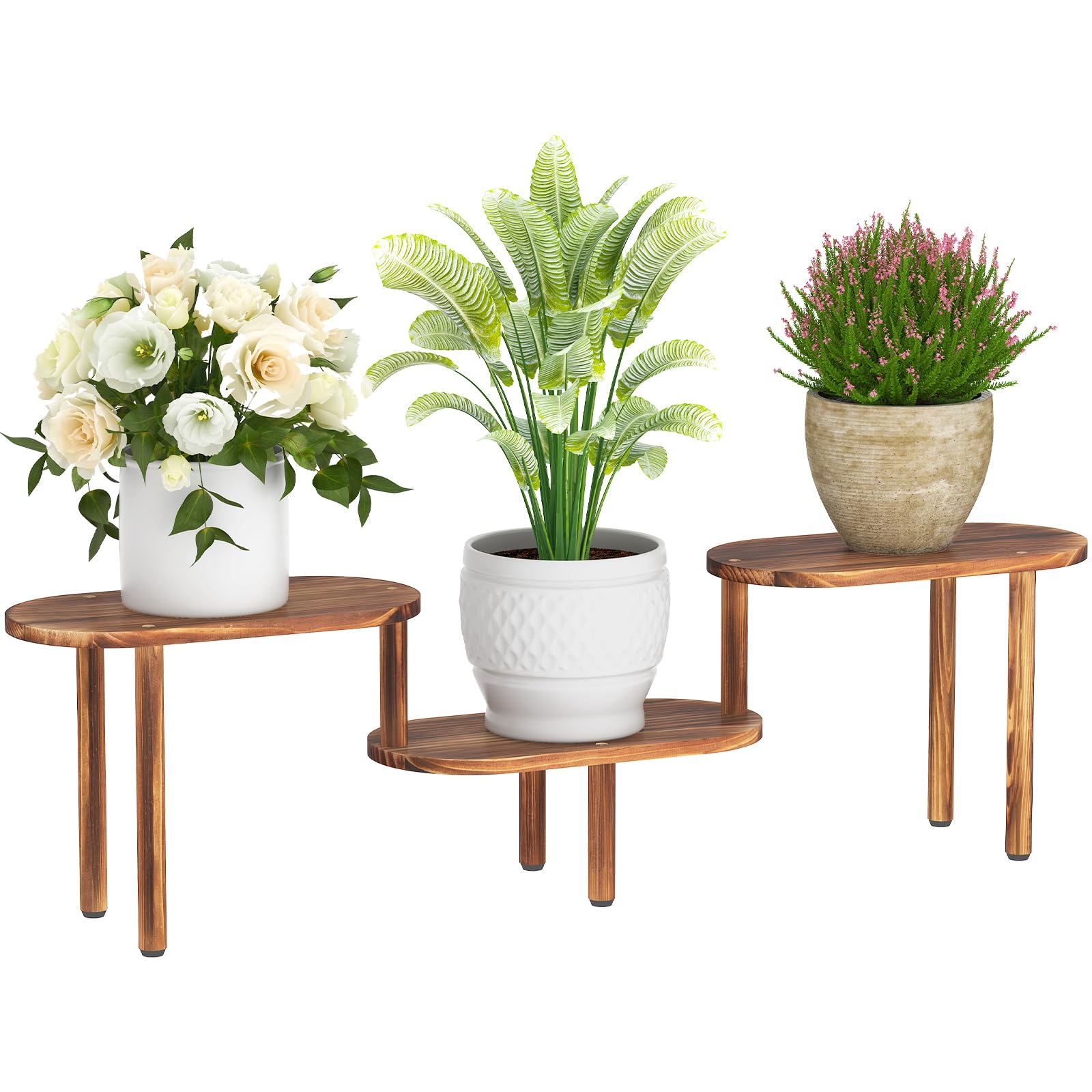 Jotboom Concave Plant Shelf Indoor,3 Tiers Deformable Oval Plant Stand,Long Flower Pot Stand for Multiple Plants,Low Plant Holder for Patio Balcony Living Room Office