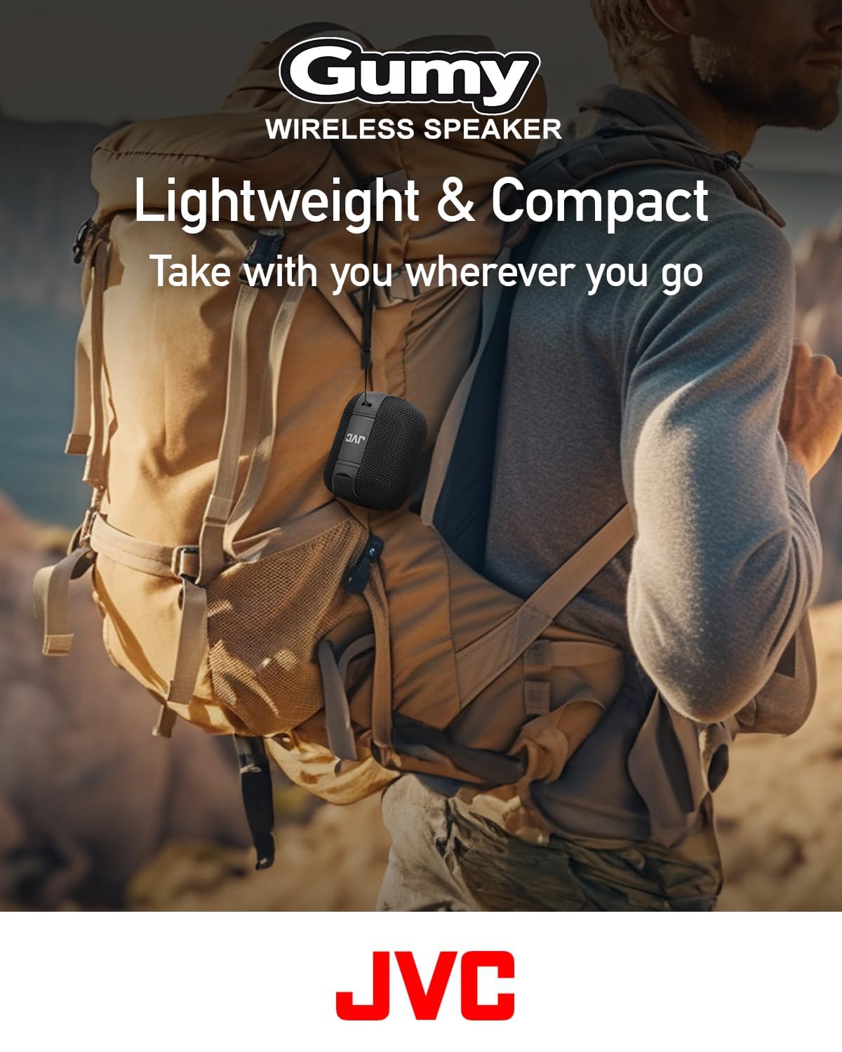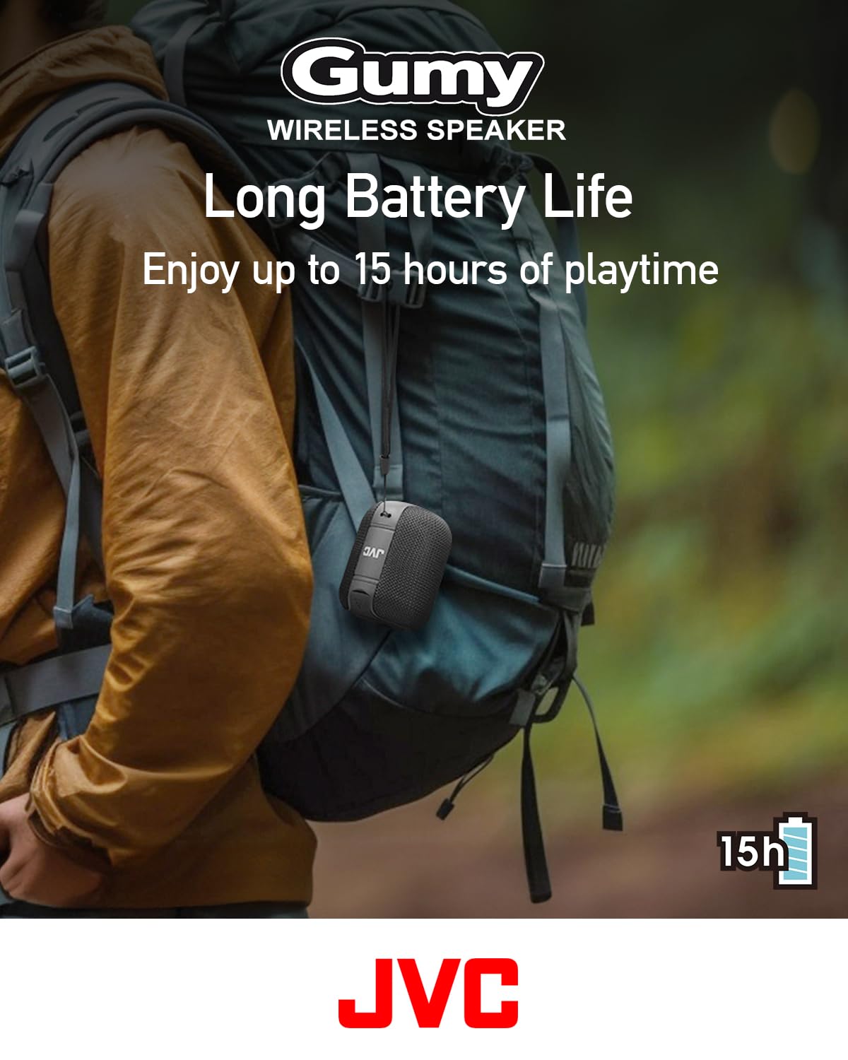 Details: JVC Portable Gumy Wireless Speaker with Surround Sound, Bluetooth 5.3, Light Weight, TWS capability, USB-C, up to 15-Hour Battery Life