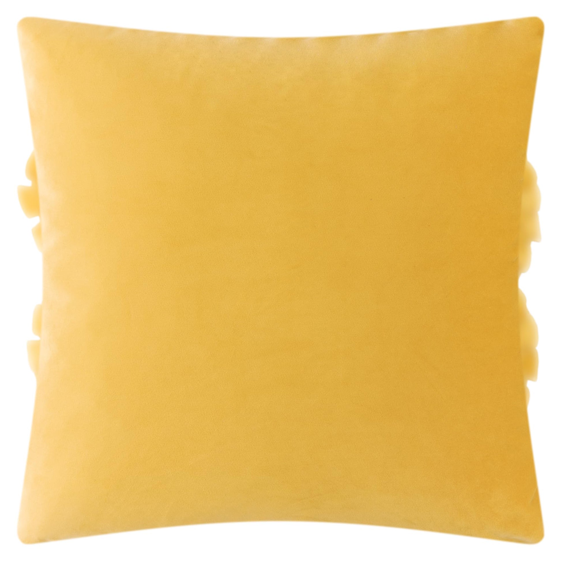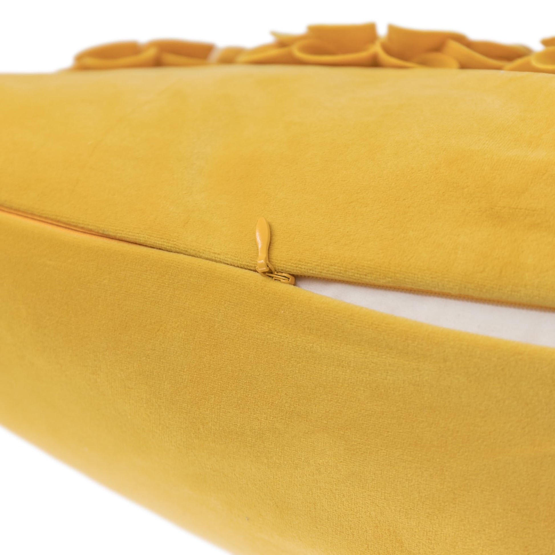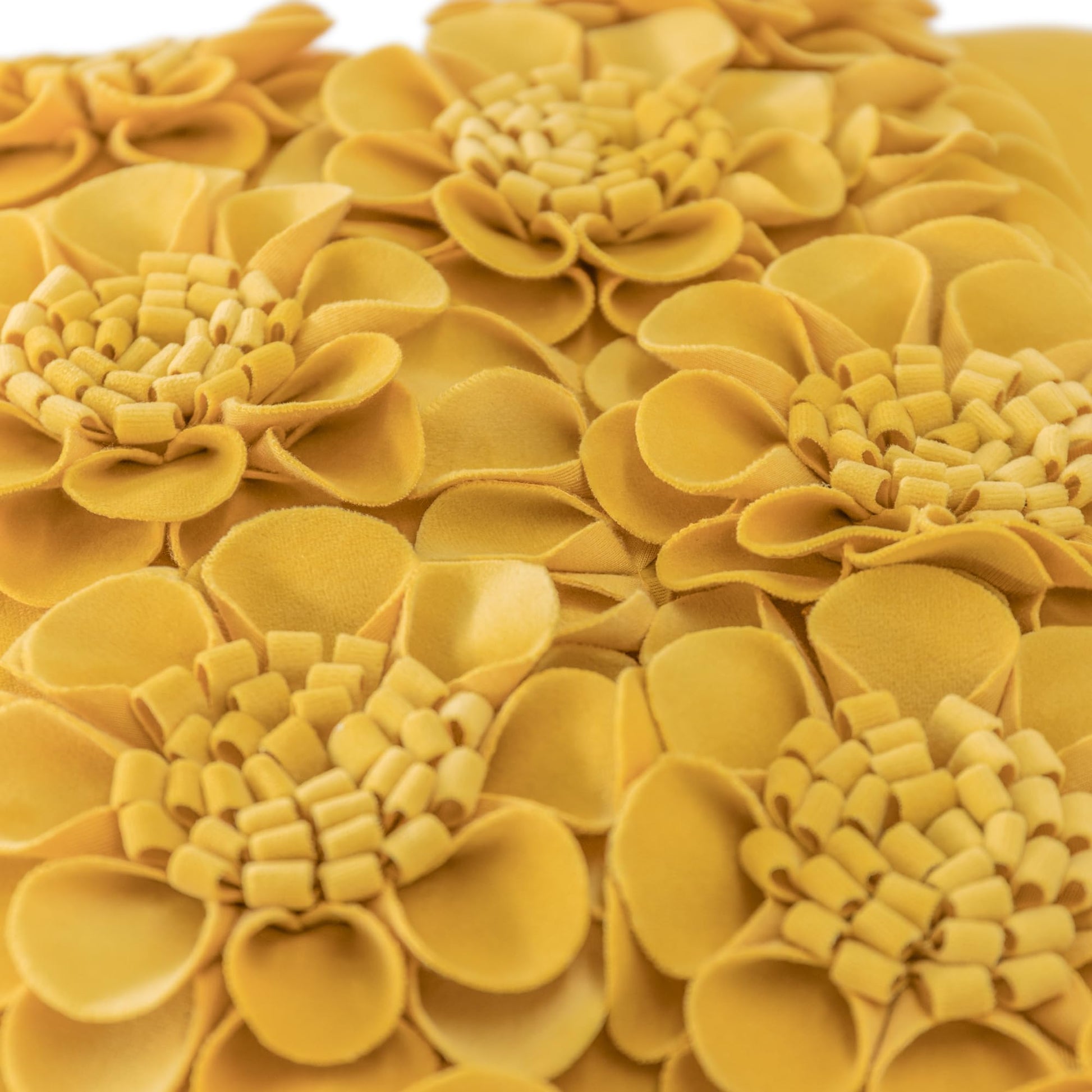 - ELEGANT DESIGN: What truly makes floral pillow stand out are the multiple delicate, three - dimensional yellow flowers that adorn it. Each flower is meticulously crafted with layers of petals, creating a rich and textured appearance. The flowers are arranged in a neat row, covering a significant portion of the pillow's surface. The centers of the flowers are intricately designed, adding to the overall visual appeal.