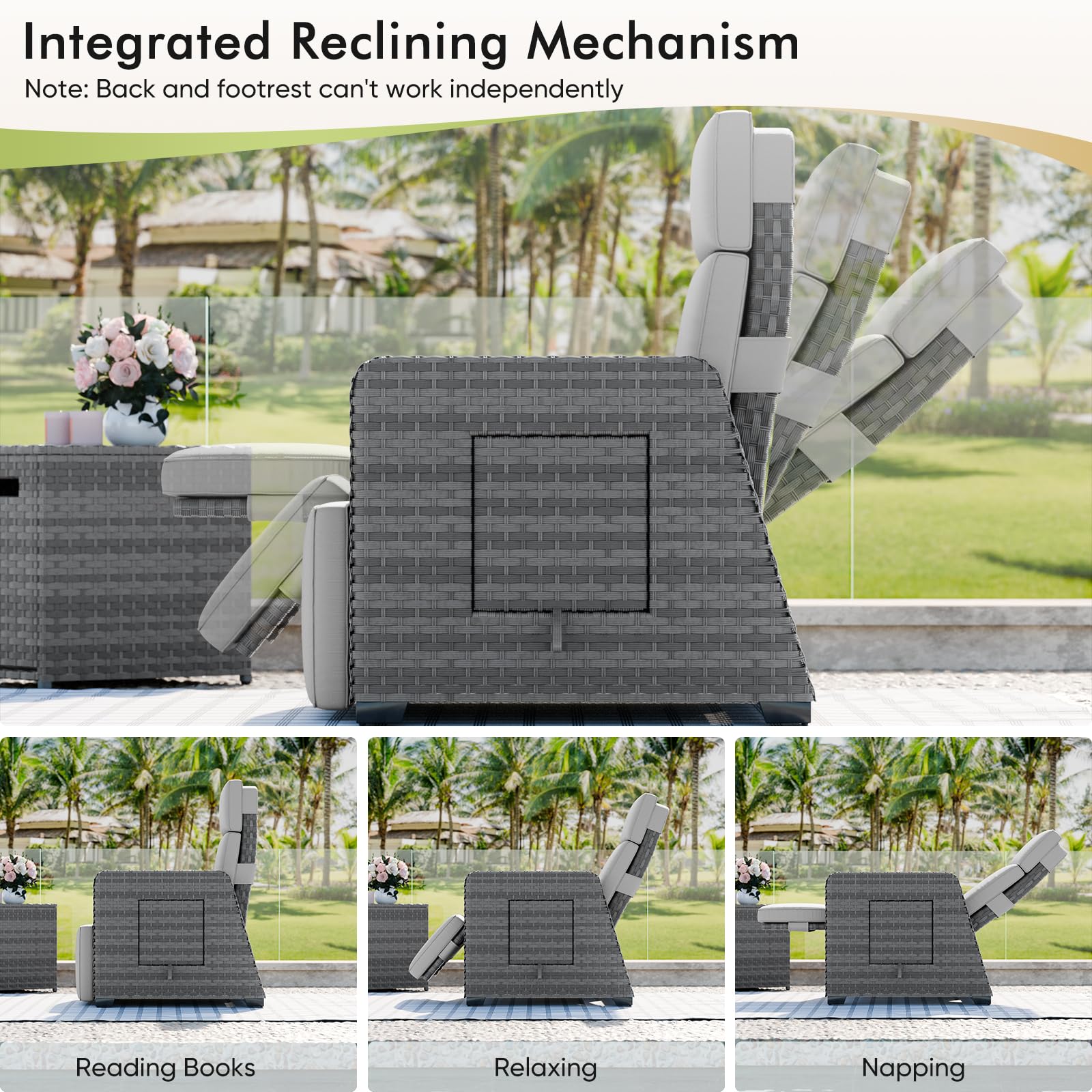 K Knowbody Outdoor Recliner Patio Chair, All-Weather Wicker Furniture Reclining with Air Pump, 150° Lay-Flat Position, Extended Footrest, Flip-Up Side Table, Removable Gray Olefin Cushions