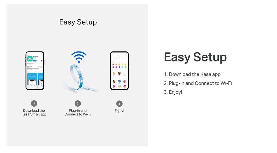 Details: Paint your home in endless colors with Kasa Smart multicolor light strip. Transform your home into the ultimate entertainment destination with LED strip light features 16 million colors with high brightness & saturation to suit every mood and scene, and take control of your light strip with just your voice or Kasa App. Important Information: This device complies with part 15 of the FCC Rules. Operation is subject to the following two conditions: (1) This device may not cause harmful interference, and (2) This device must accept any interference received, including interference that may cause undesired operation.