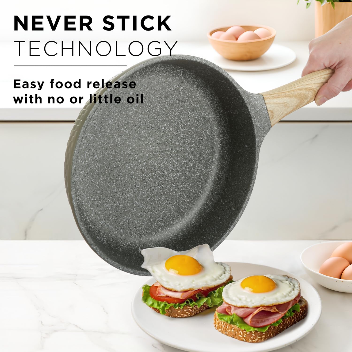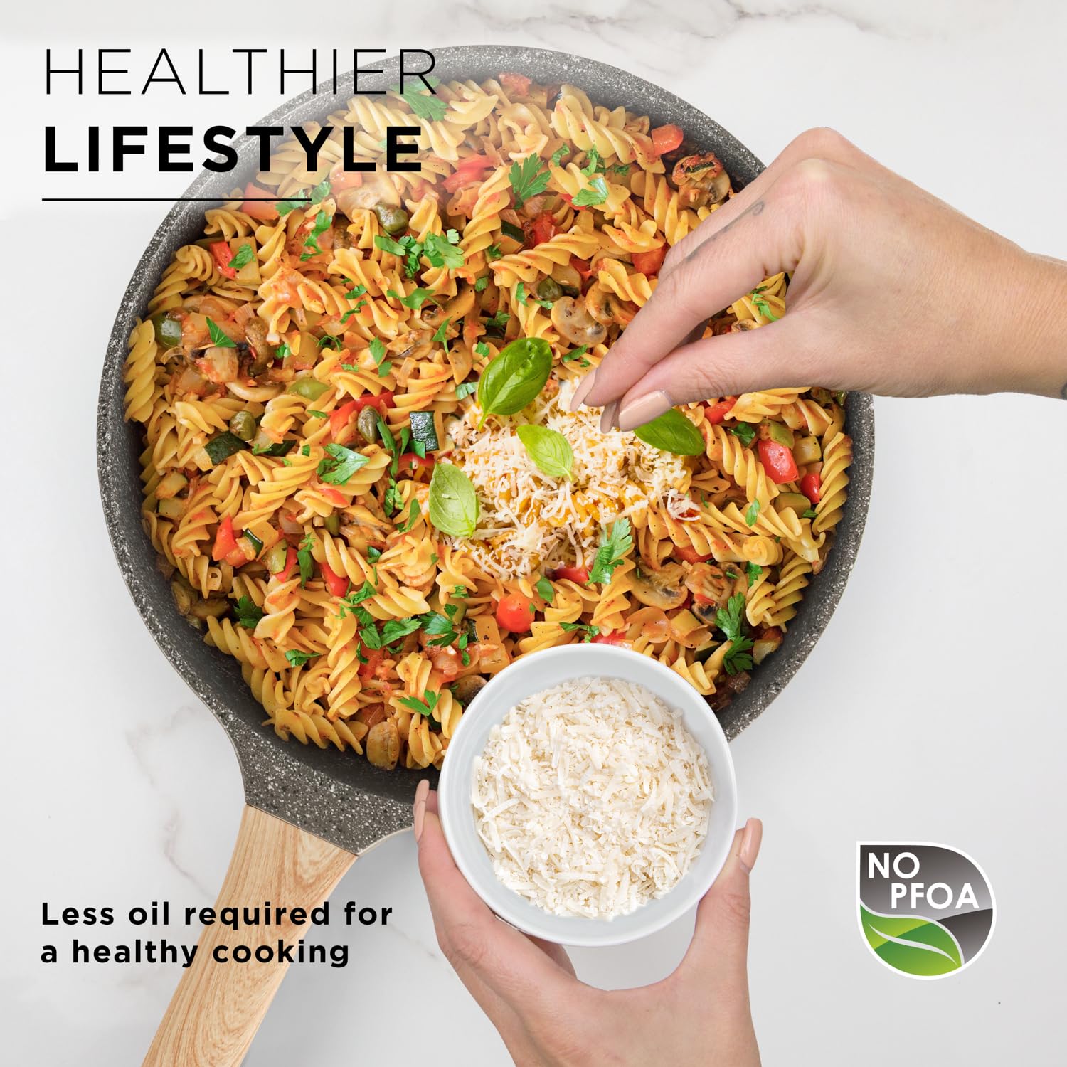 - [HEALTHY LIFESTYLE]: PFOA-free nonstick coating requires less oil intake for a healthier cooking.