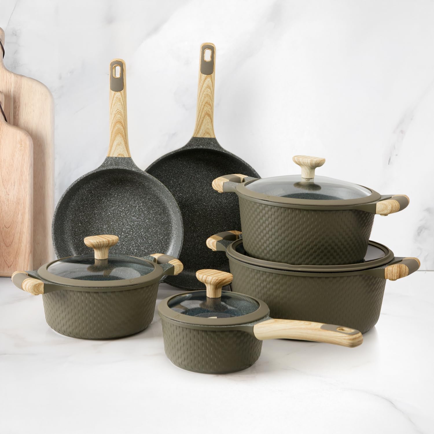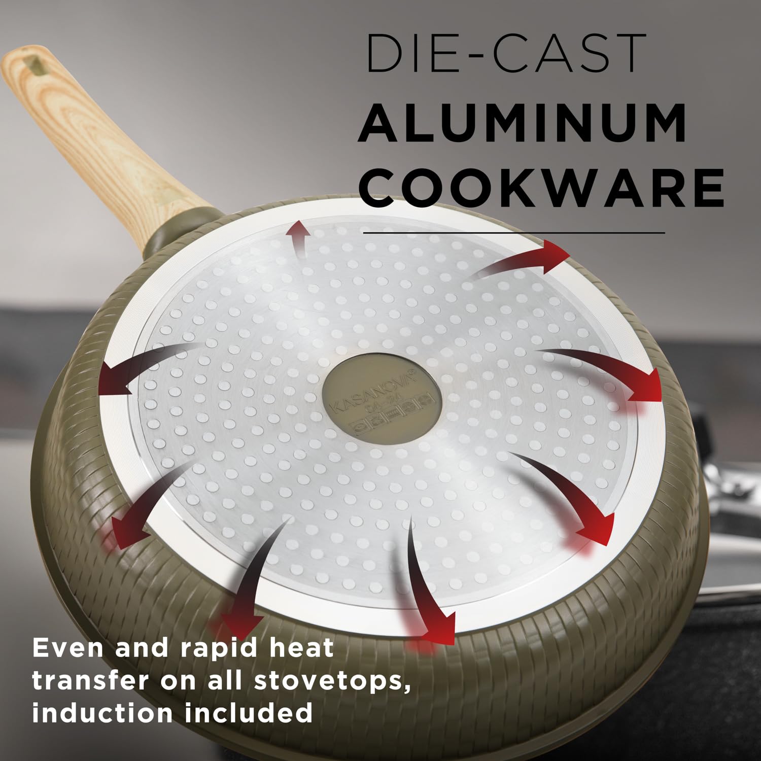KASANOVA 10Pcs Cookware set, Die-cast Aluminum pots and pans, Nonstick frying pans and casseroles, Induction safe, PFOA-free (Green, 10 pcs)