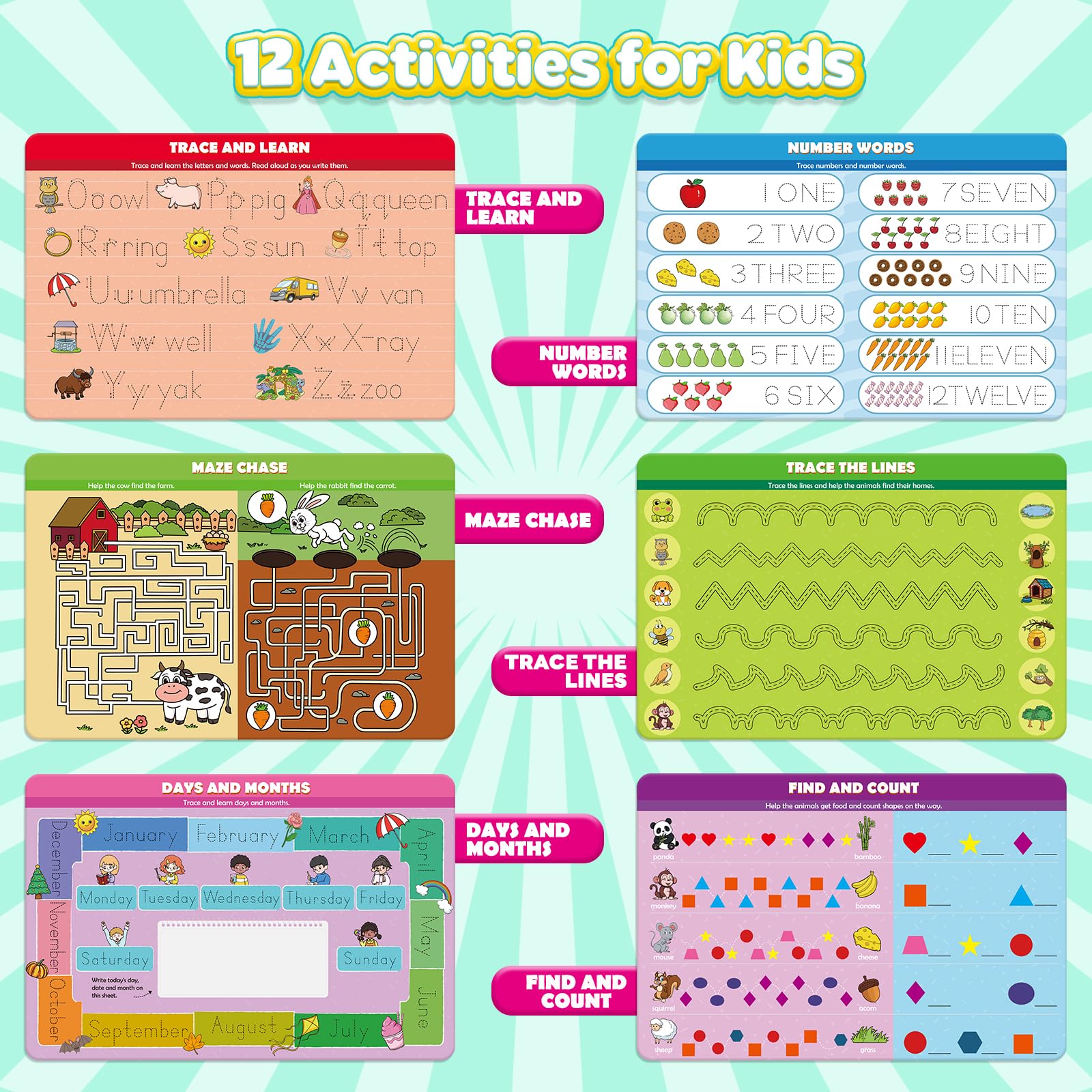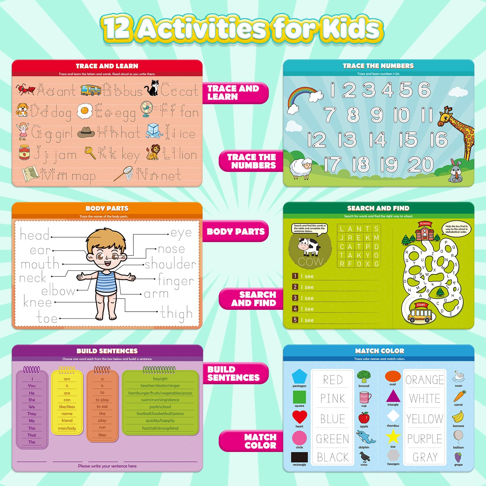 - 【Handwriting Practice for Kids】 Preschool learning activities include 12 different toddler learning activities, such as letter tracing, number tracing and color matching, etc.