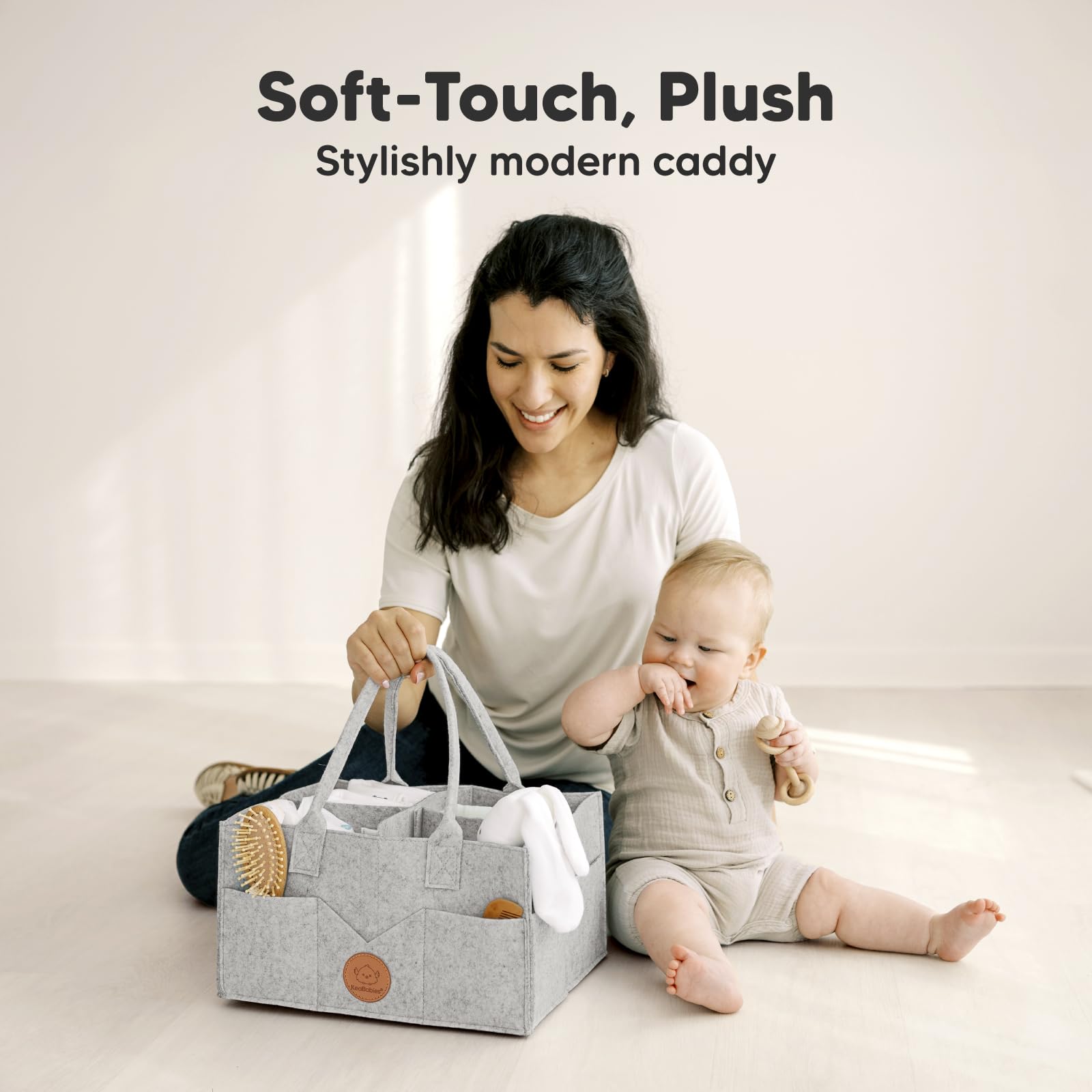 KeaBabies Baby Diaper Caddy Organizer with Handle - Portable Baby Organizers and Storage for Nursery, Changing Table, Large Travel Car Caddy, Girls,Boys Shower Gift Basket,New Mom Gifts(Classic Gray)