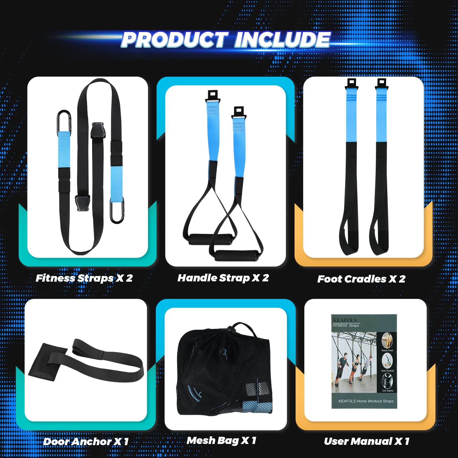 KEAFOLS Bodyweight Fitness Resistance Suspension Kit Extension Strap Door Anchors, Powerlifting Strength Workout Straps Full Body Complete Home Gym Body Core Exercise