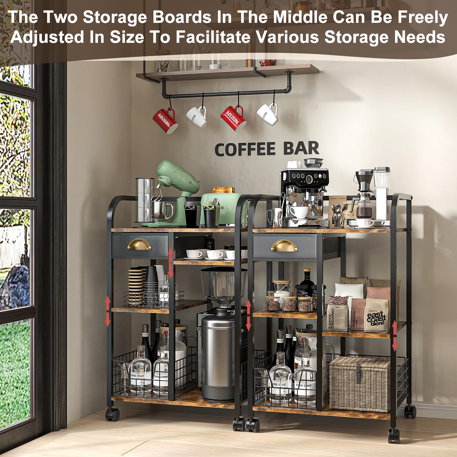 - 【4-Tier Adjustable Coffee Bar】 The middle layer of the coffee cart is adjustable, so you can adjust the storage range according to the size of the items, making the whole space neat and orderly, bringing a better experience for coffee brewing and modulation.